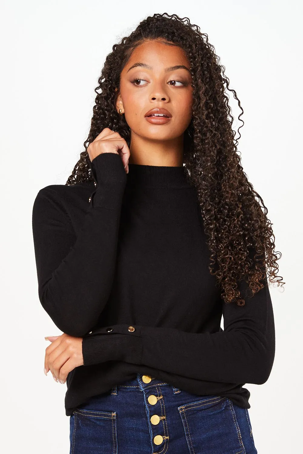 Sale!Tall Funnel Neck Button Cuff Longline Jumper