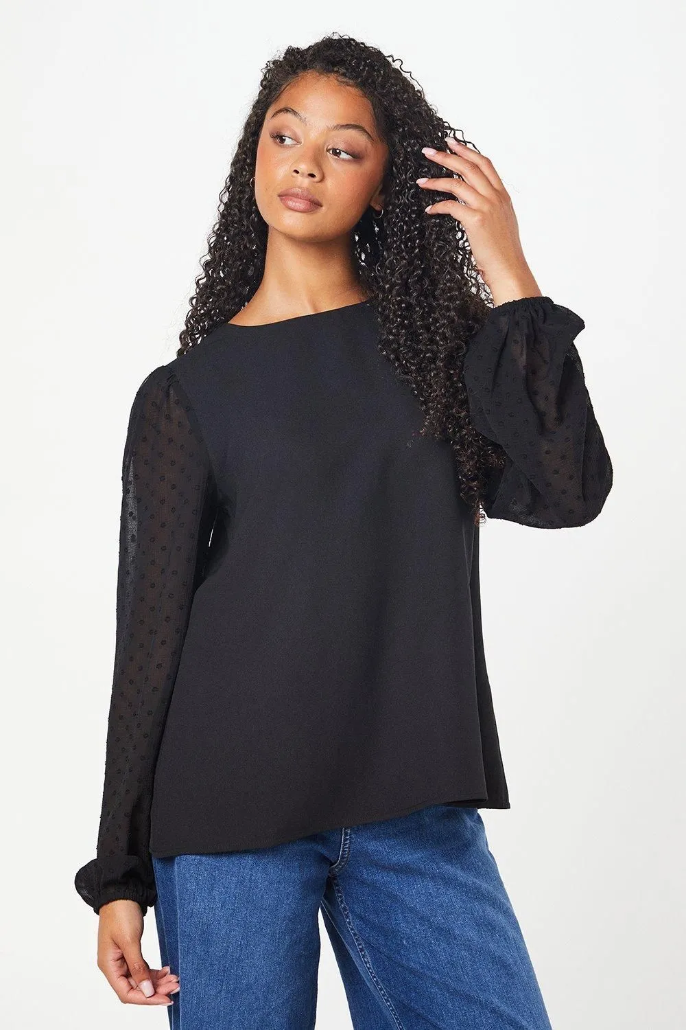 Sale!Tall Dobby Contrast Sleeve Blouse