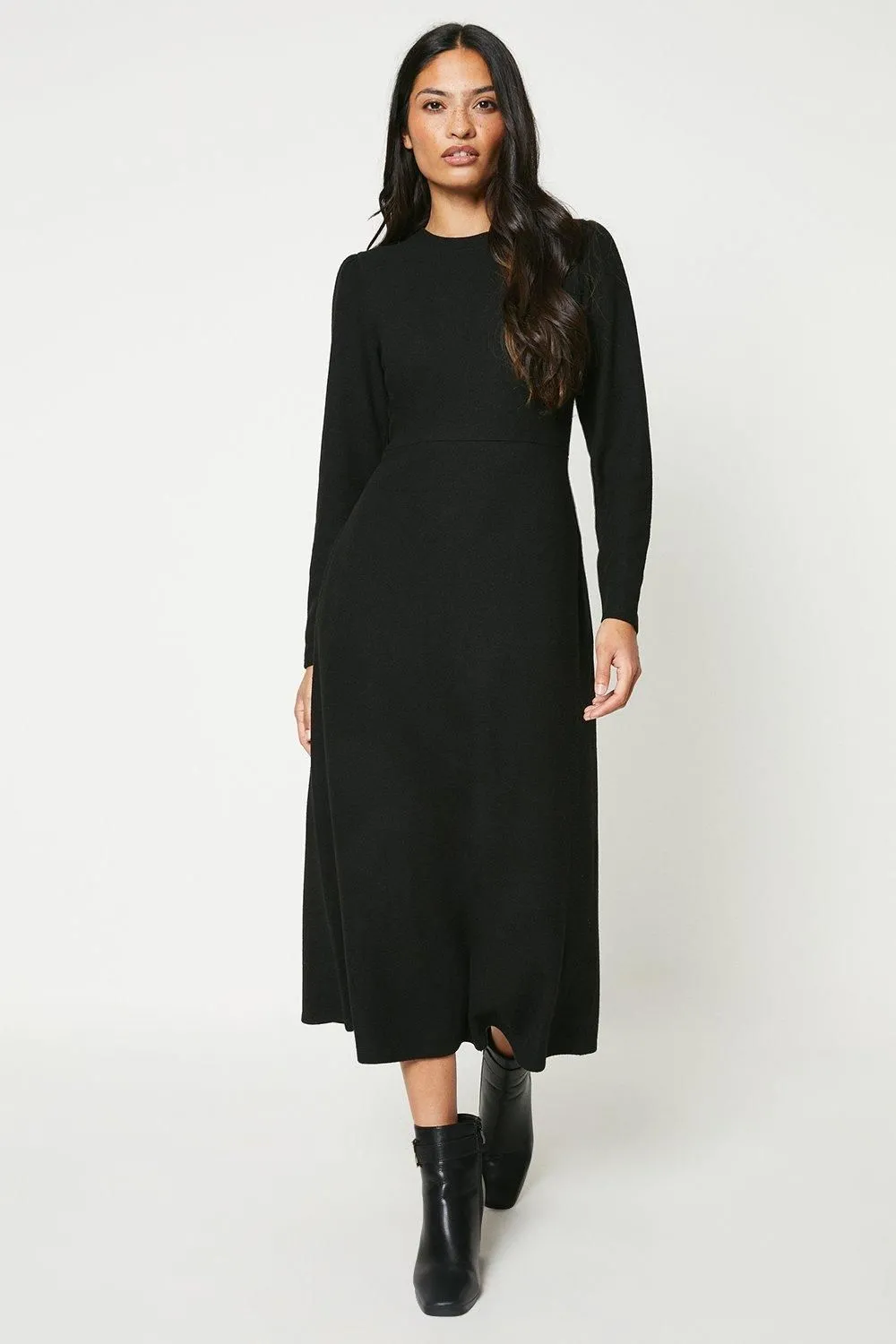 Sale!Brushed Soft Touch High Neck Fit And Flare Midi Dress