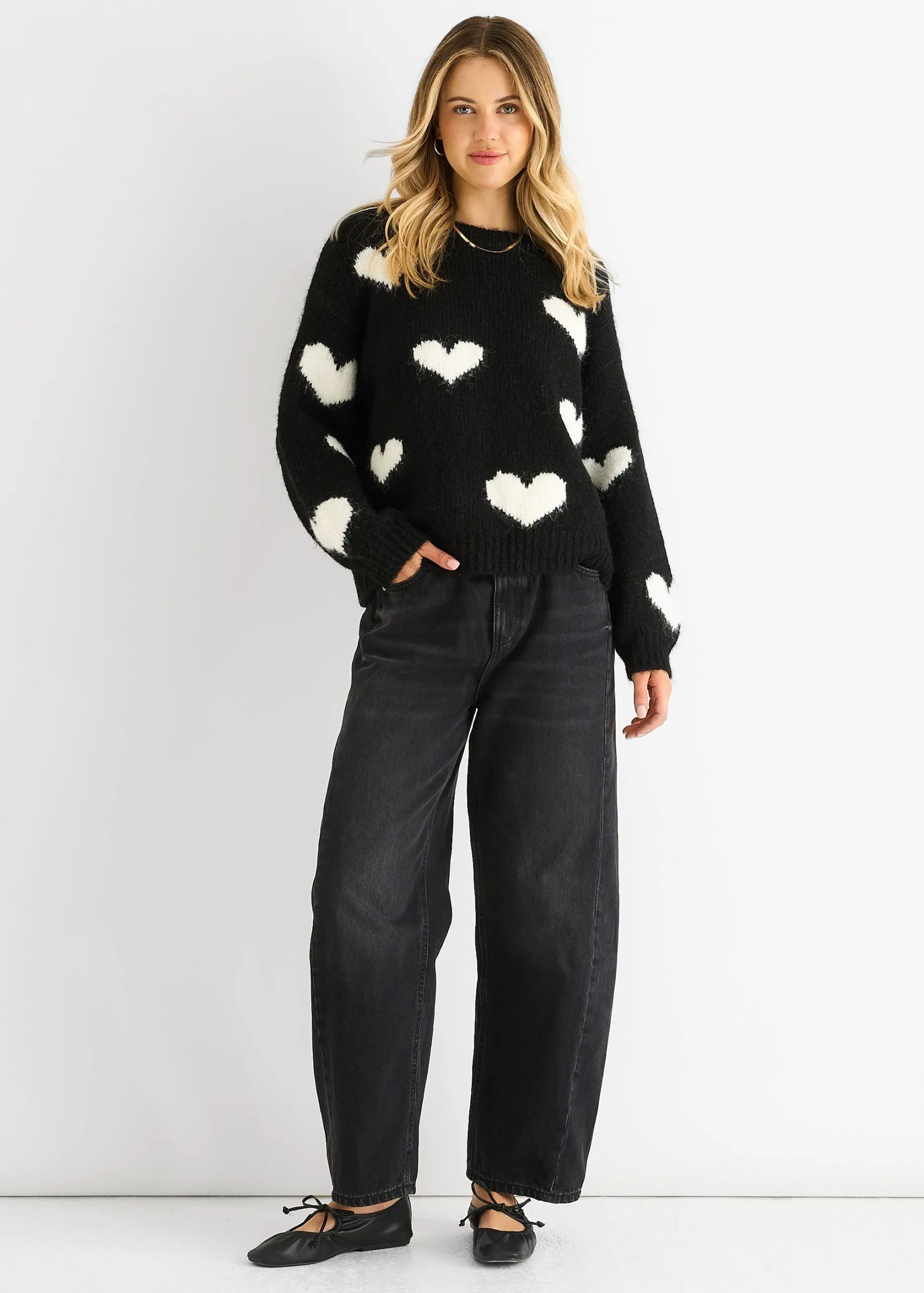 Sale!Black Contrast Heart Oversized Knit Jumper