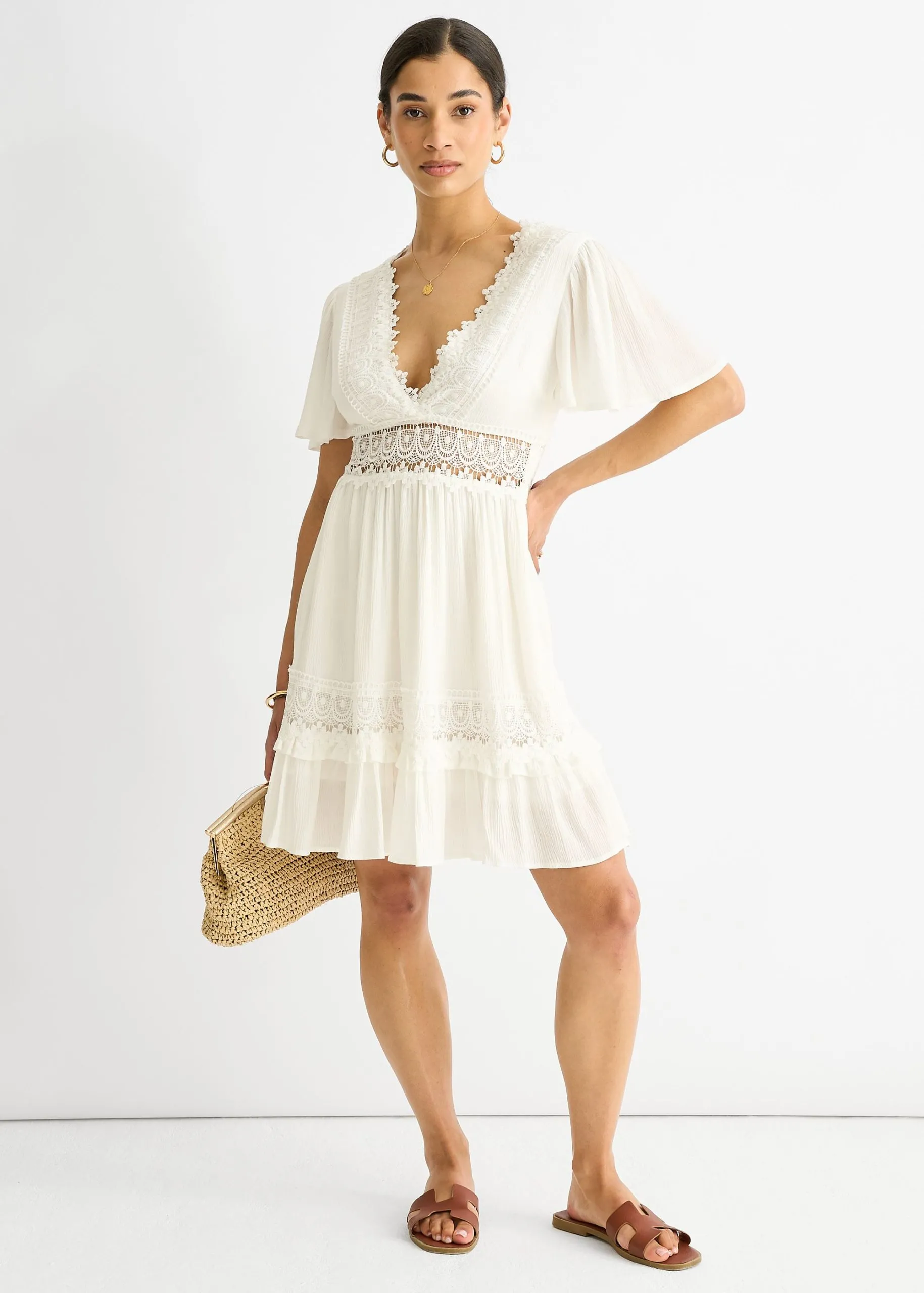 Sale!White Lace Trim Viscose Mini Skater Dress
