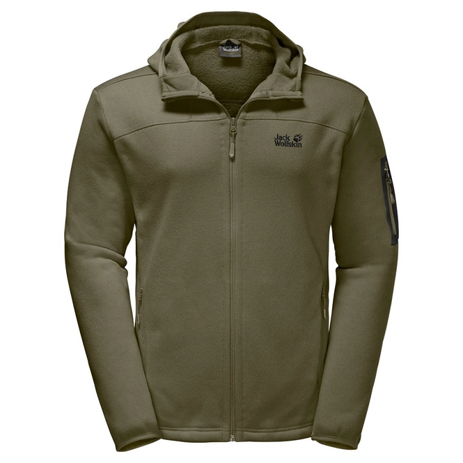 Sale!Fleece Jack Wolfskin Castle Rock Hooded Burnt Olive