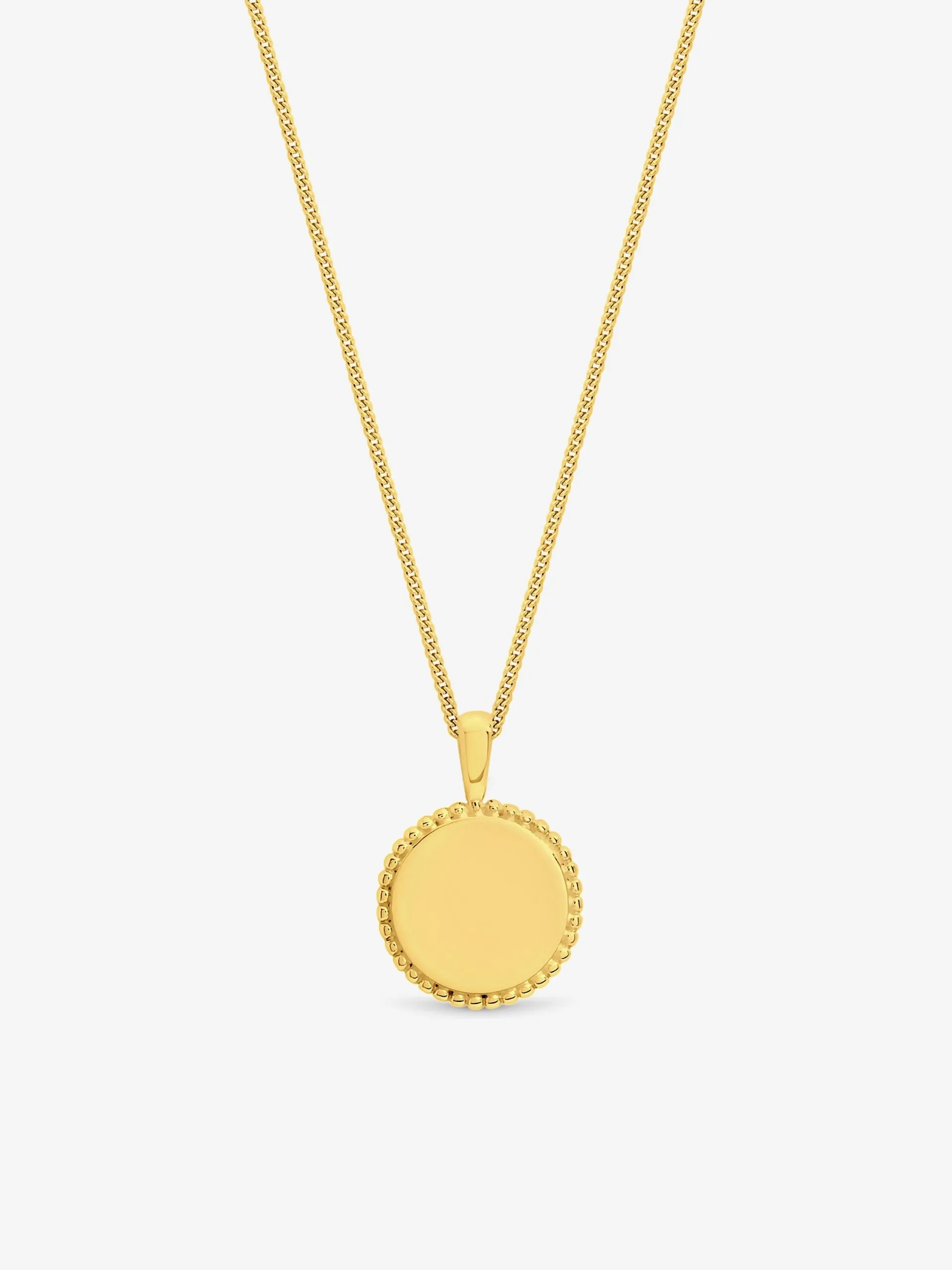 • 14ct Real Gold Plated Sterling Silver Polished Beaded Edge Round Pendant