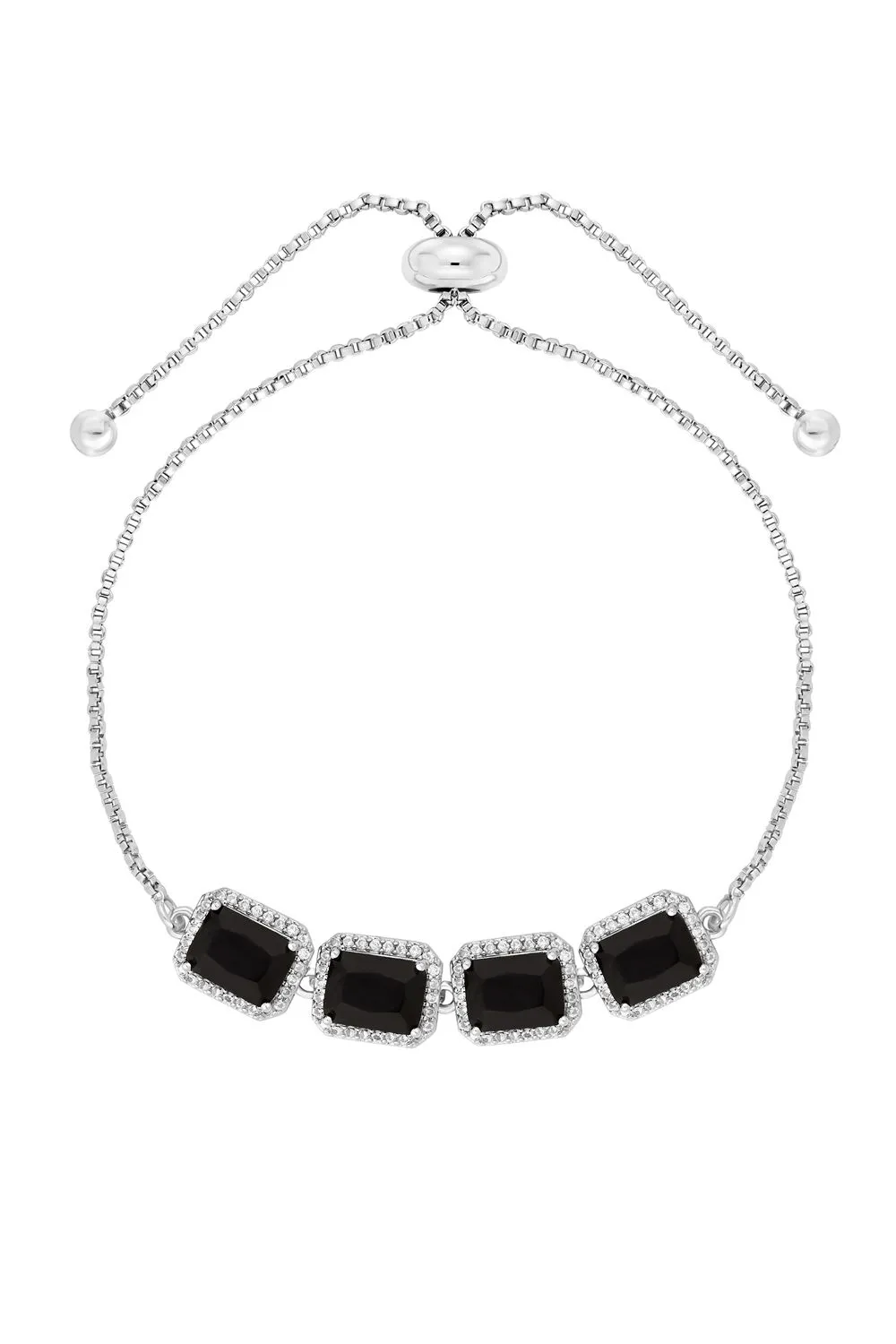 Rhodium Plated And Cubic Zirconia Jet Stone Toggle Bracelet