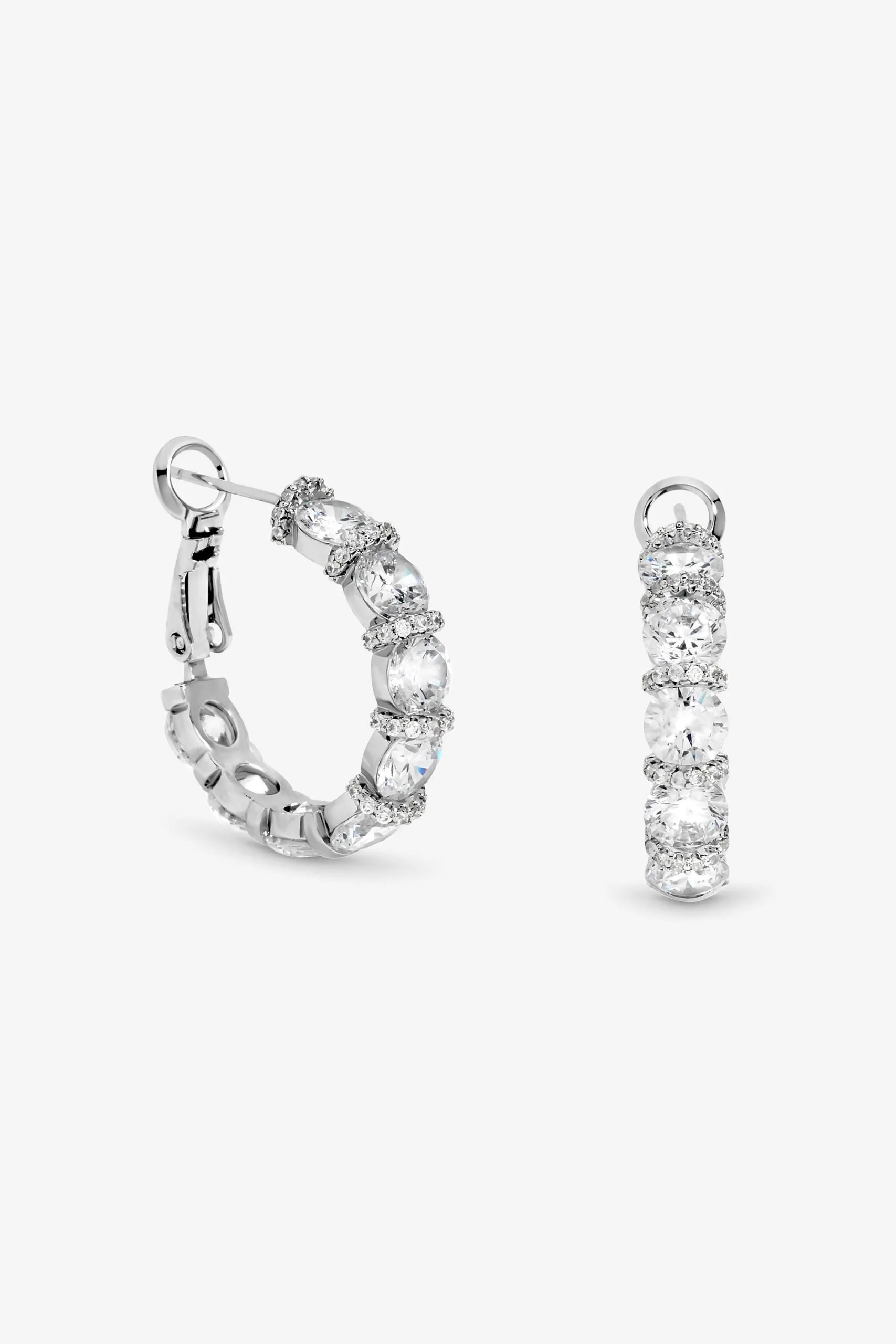Rhodium Plated Cubic Zirconia Hoop Earrings