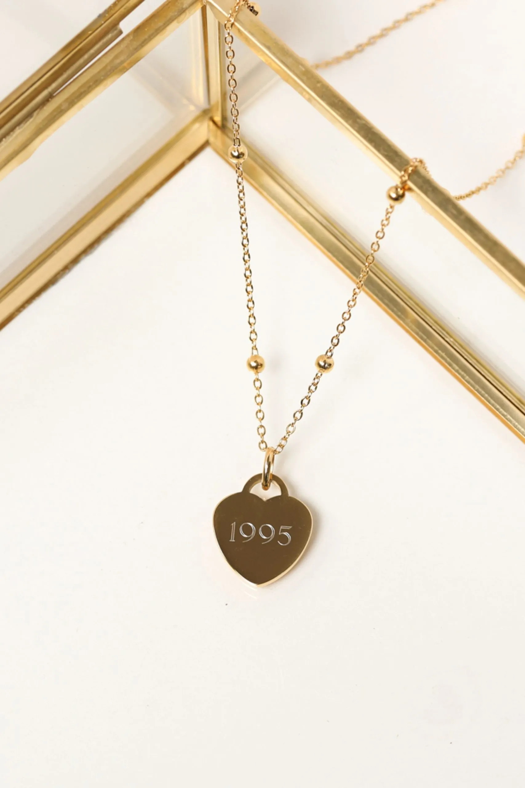 • Gold Plated Stainless Steel Engravable Heart Ball Chain Necklace