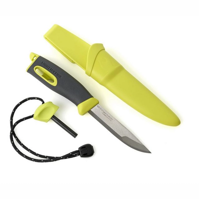 Sale!Survival Knife Light My Fire Fireknife Lime + Plastic Holster and Flint