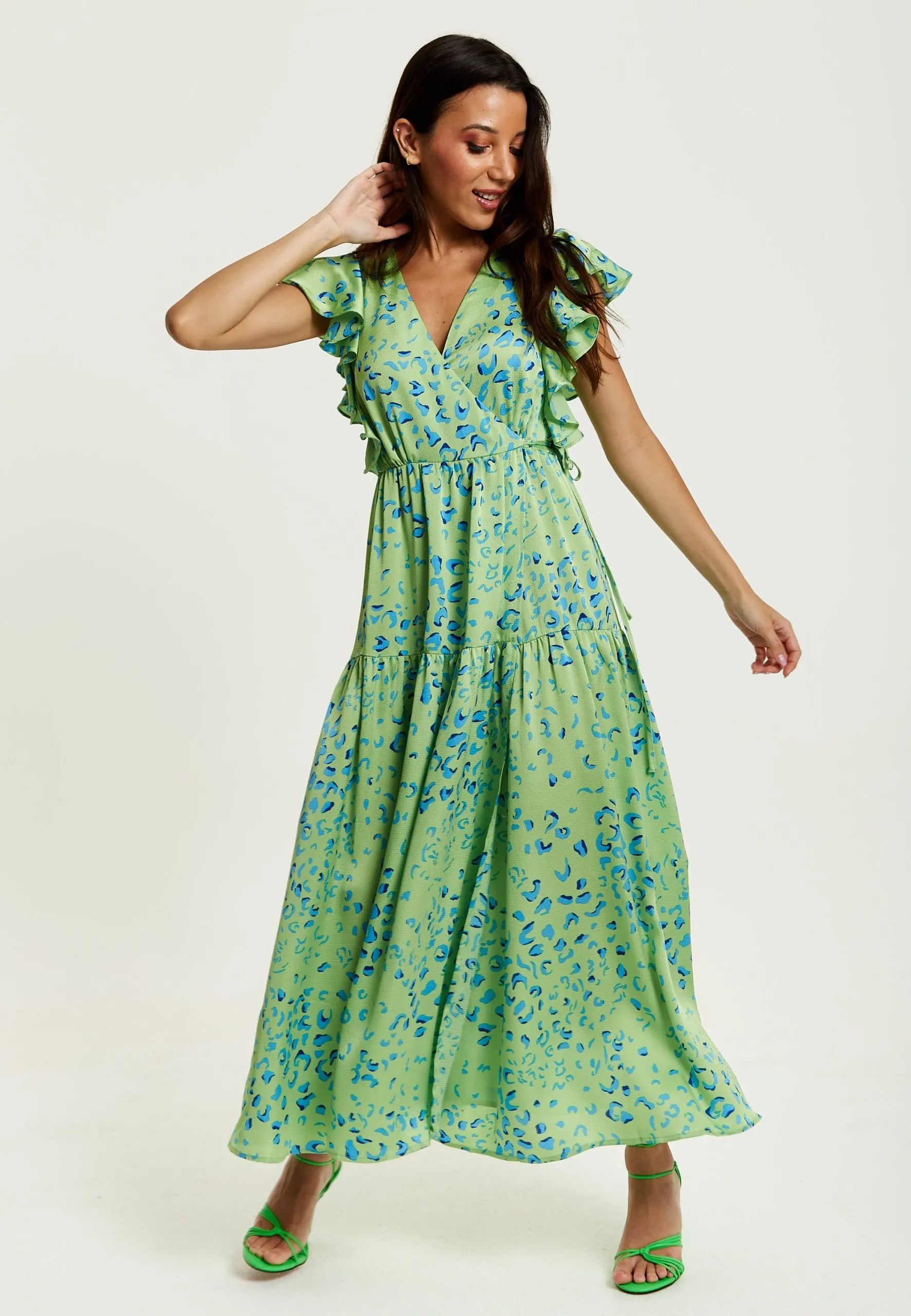 Sale!Animal Print Maxi Wrap Dress In Sage