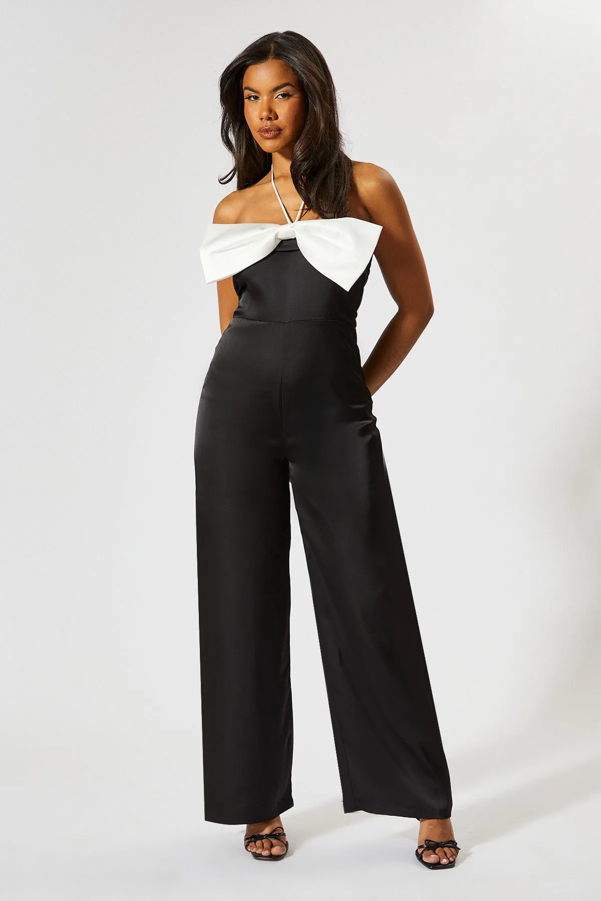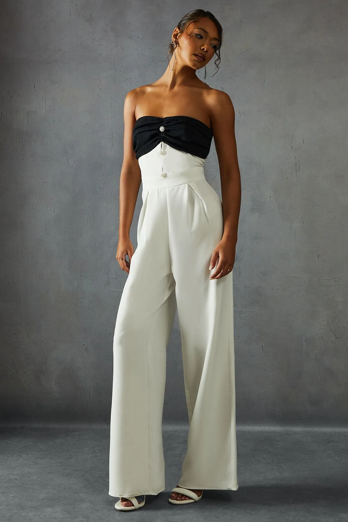 Contrast Bust Pearl Button Straight Leg Jumpsuit