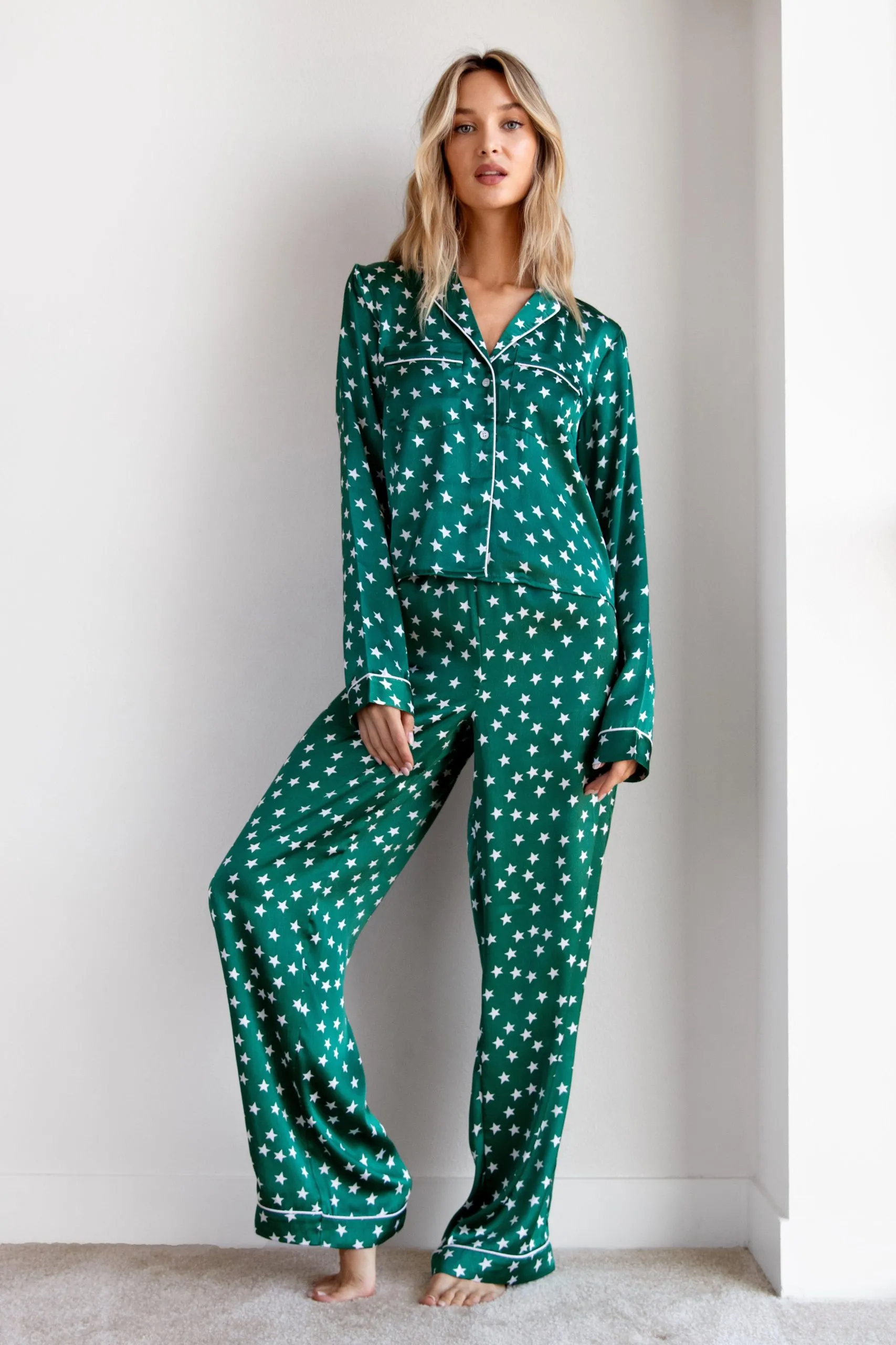 Sale!Star Satin Pajama Shirt and Pants Set