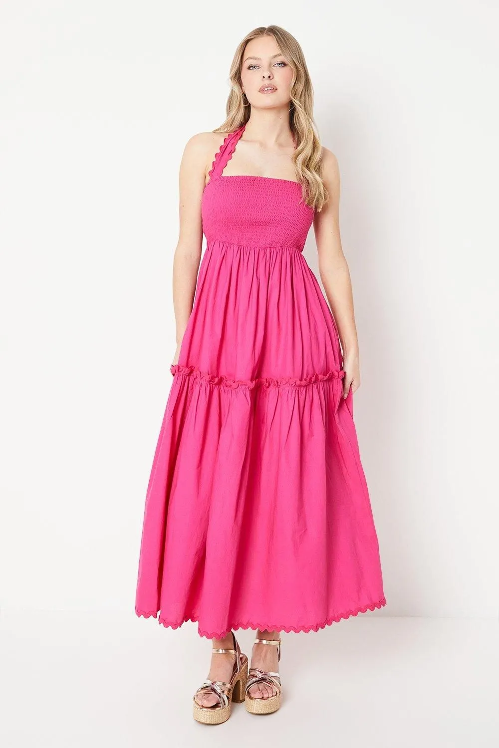 Sale!Cotton Poplin Shirred Halterneck Midi Dress