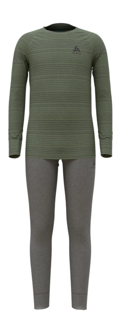 Sale!Base Layer Set Odlo Unisex Junior Long Active Warm Eco Odlo Steel Grey Melange Matte Green