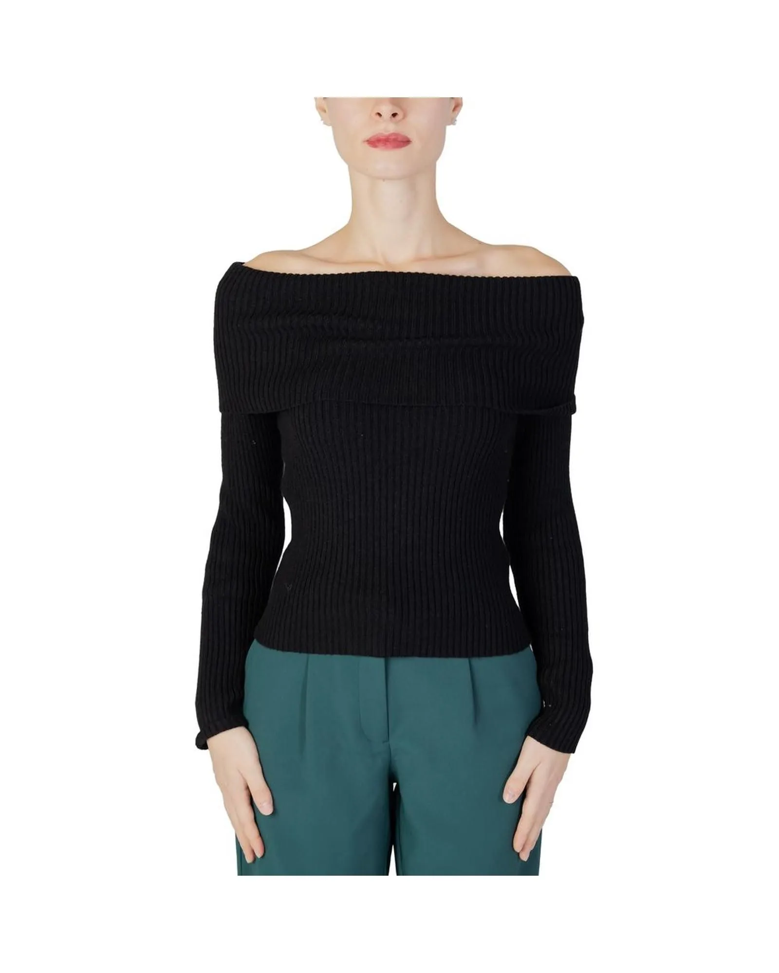 Sale!Ribbed Knit Offtheshoulder Sweater- Black Knitwear