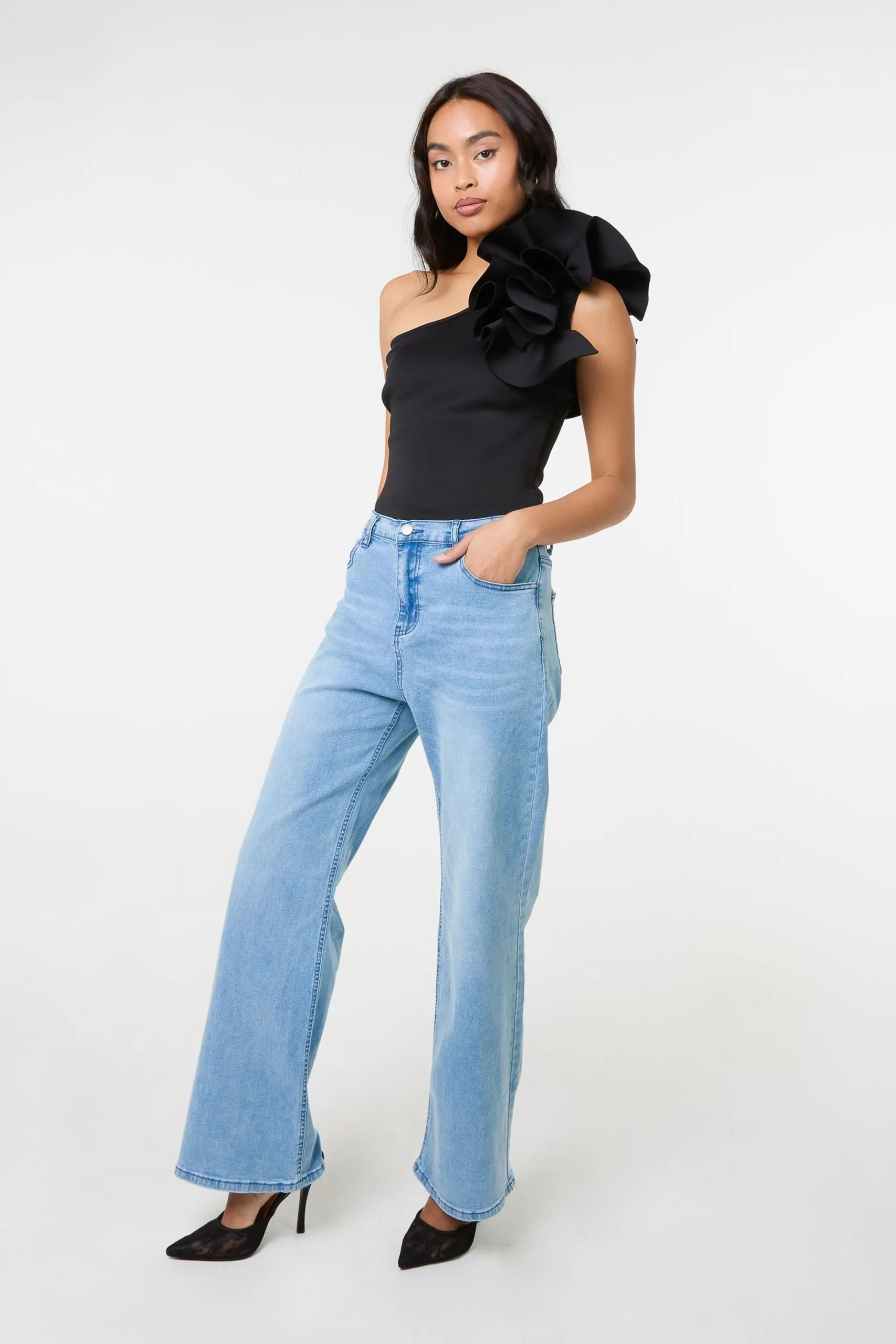 Sale!Black One Shoulder Detail Bodysuit