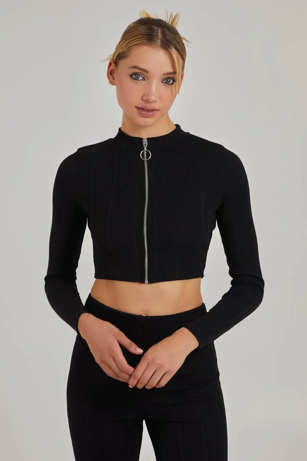 Sale!Wide Ribbed Zip Up Long Sleeve Top