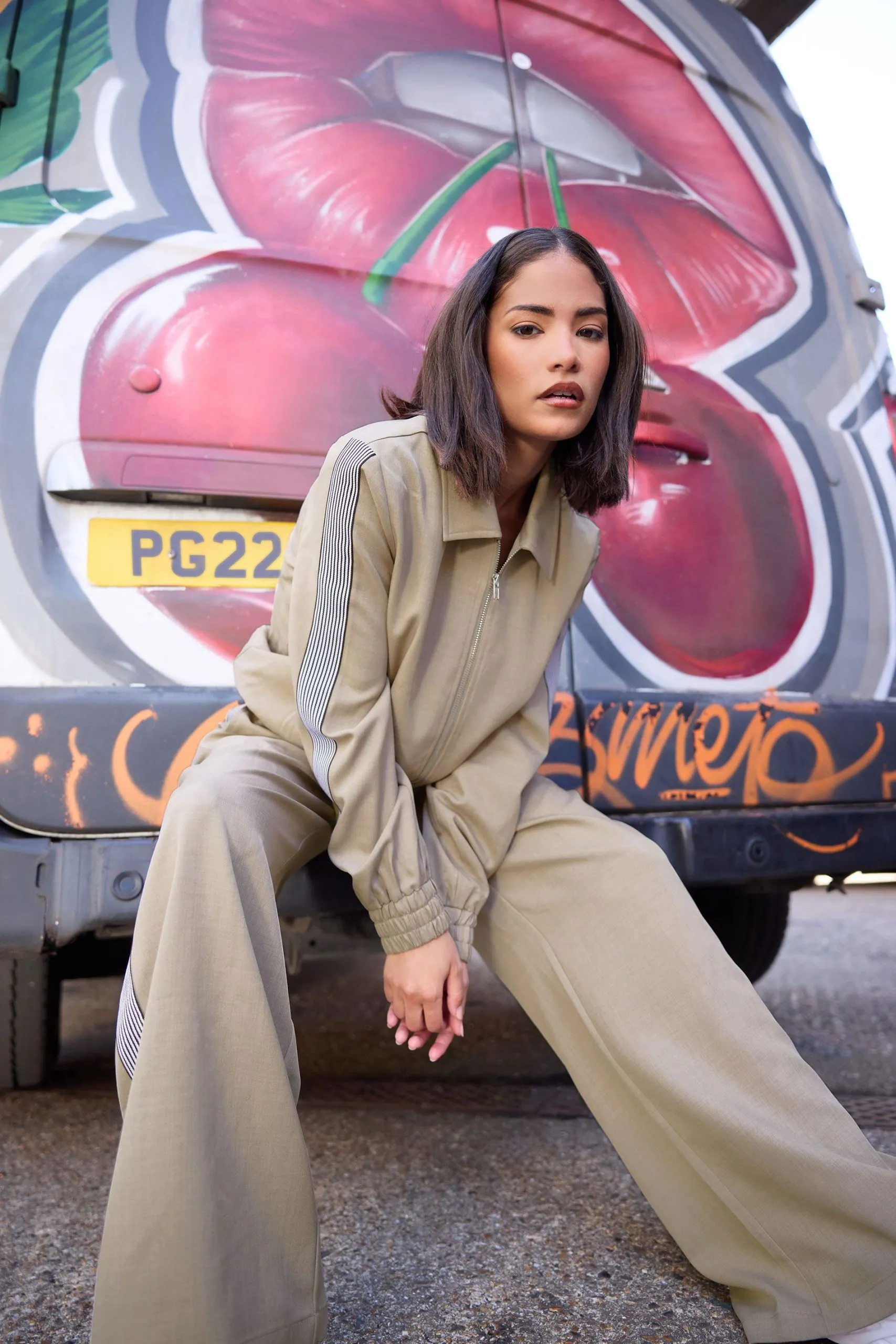 • Petite Striped Bomber Jacket