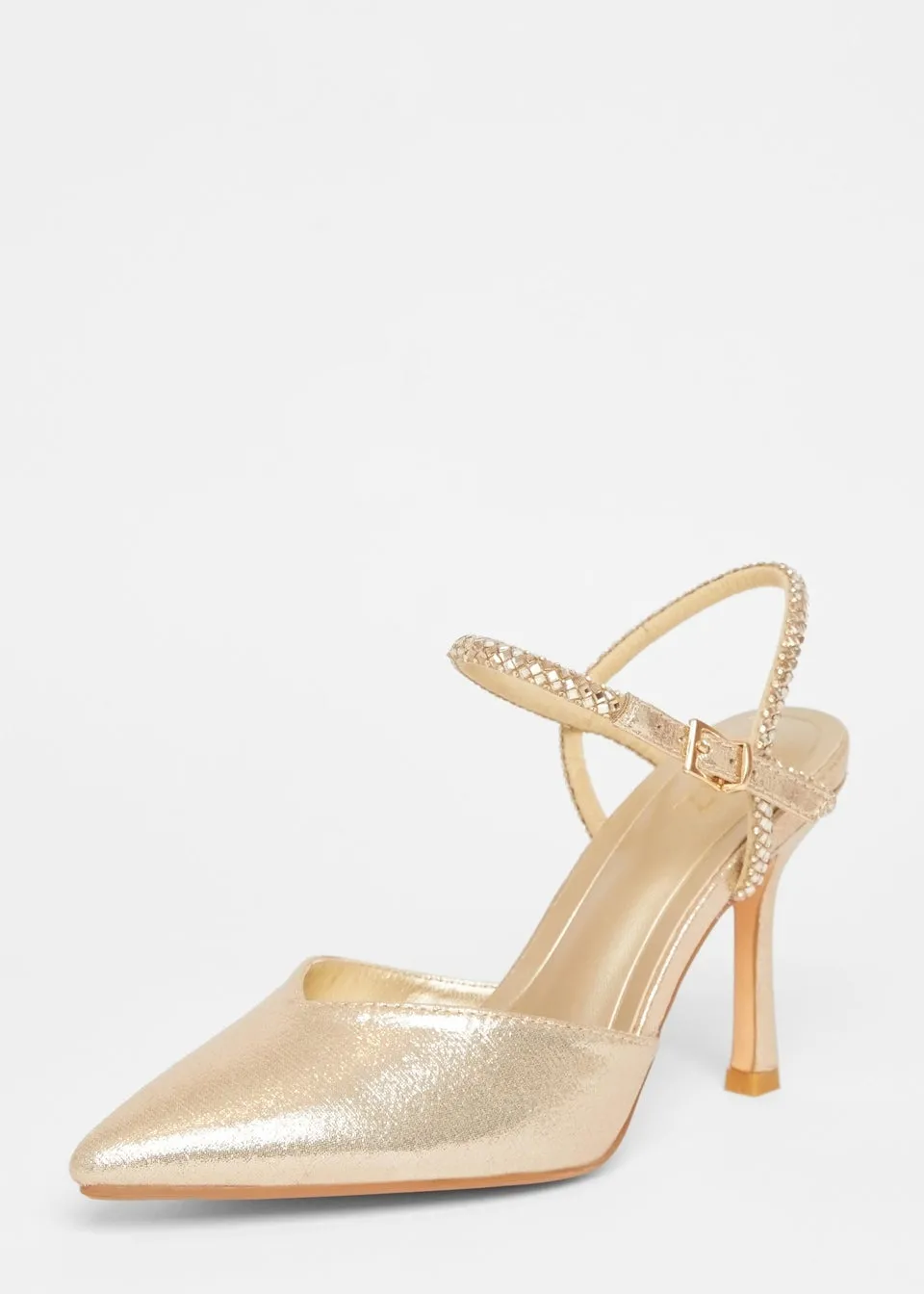 Sale!Quiz Gold Diamante Twist Top Handle Bag