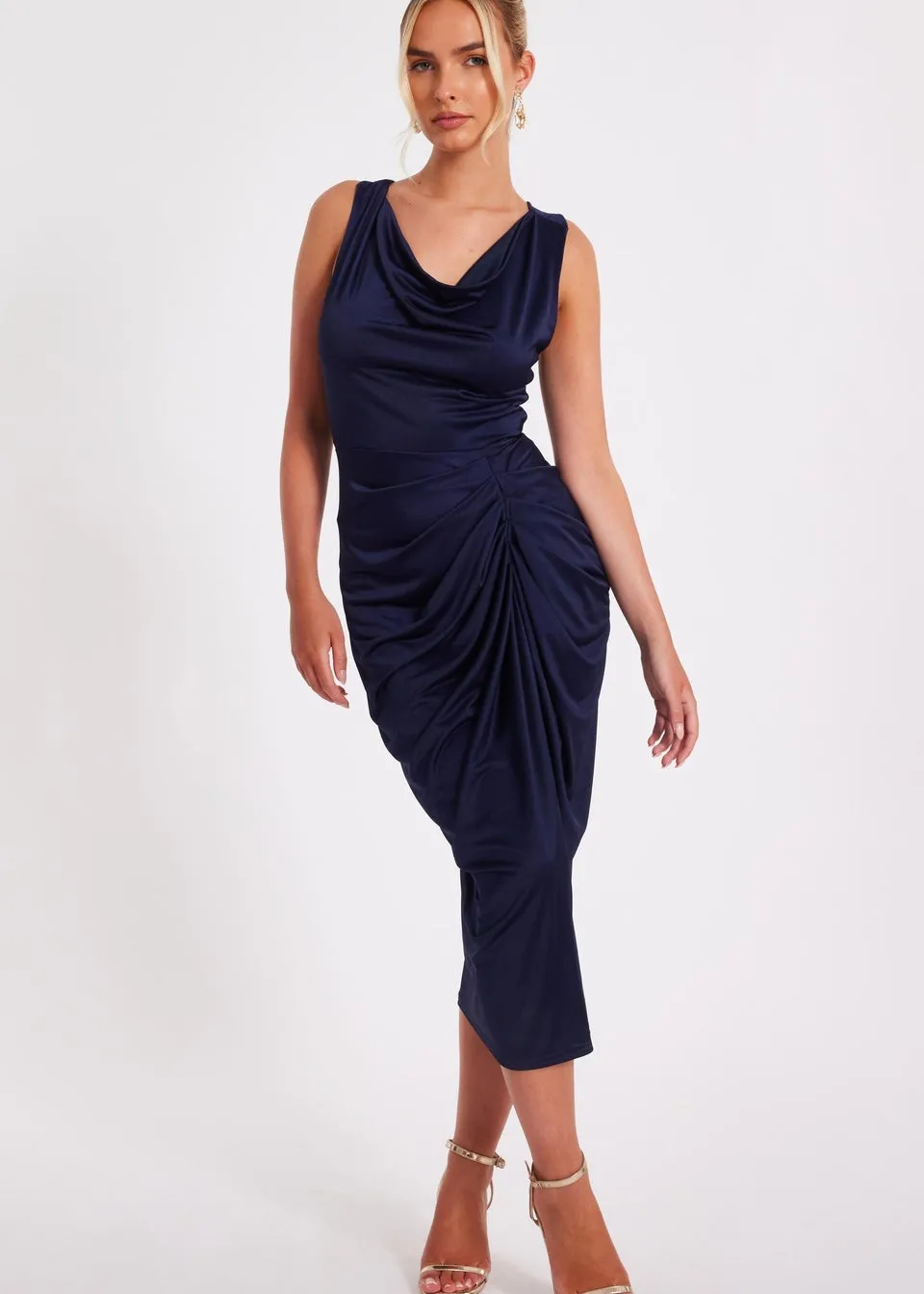 Sale!Quiz Navy Cowl Neck Midi Dress
