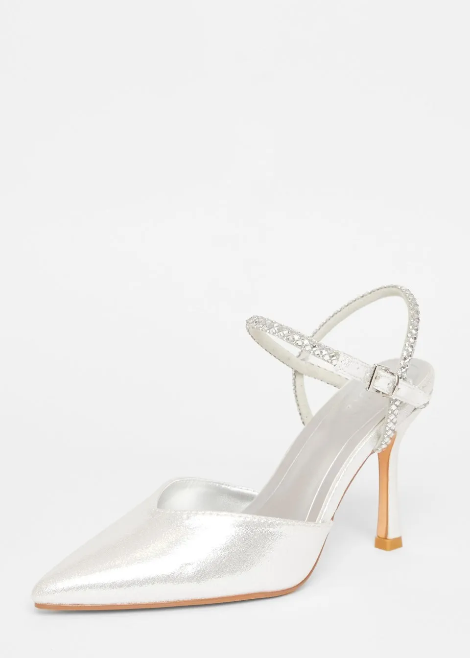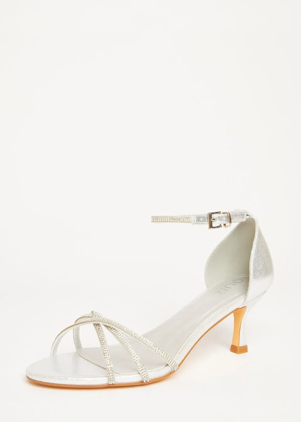 Sale!Quiz Silver Diamante Cross Strap Heels