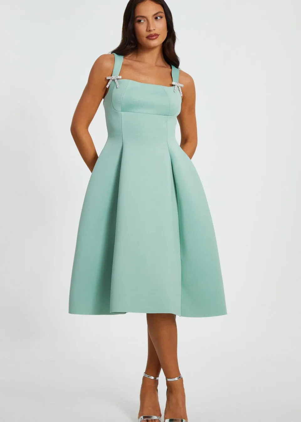 Sale!Quiz Sage Diamante Bow Midi Dress