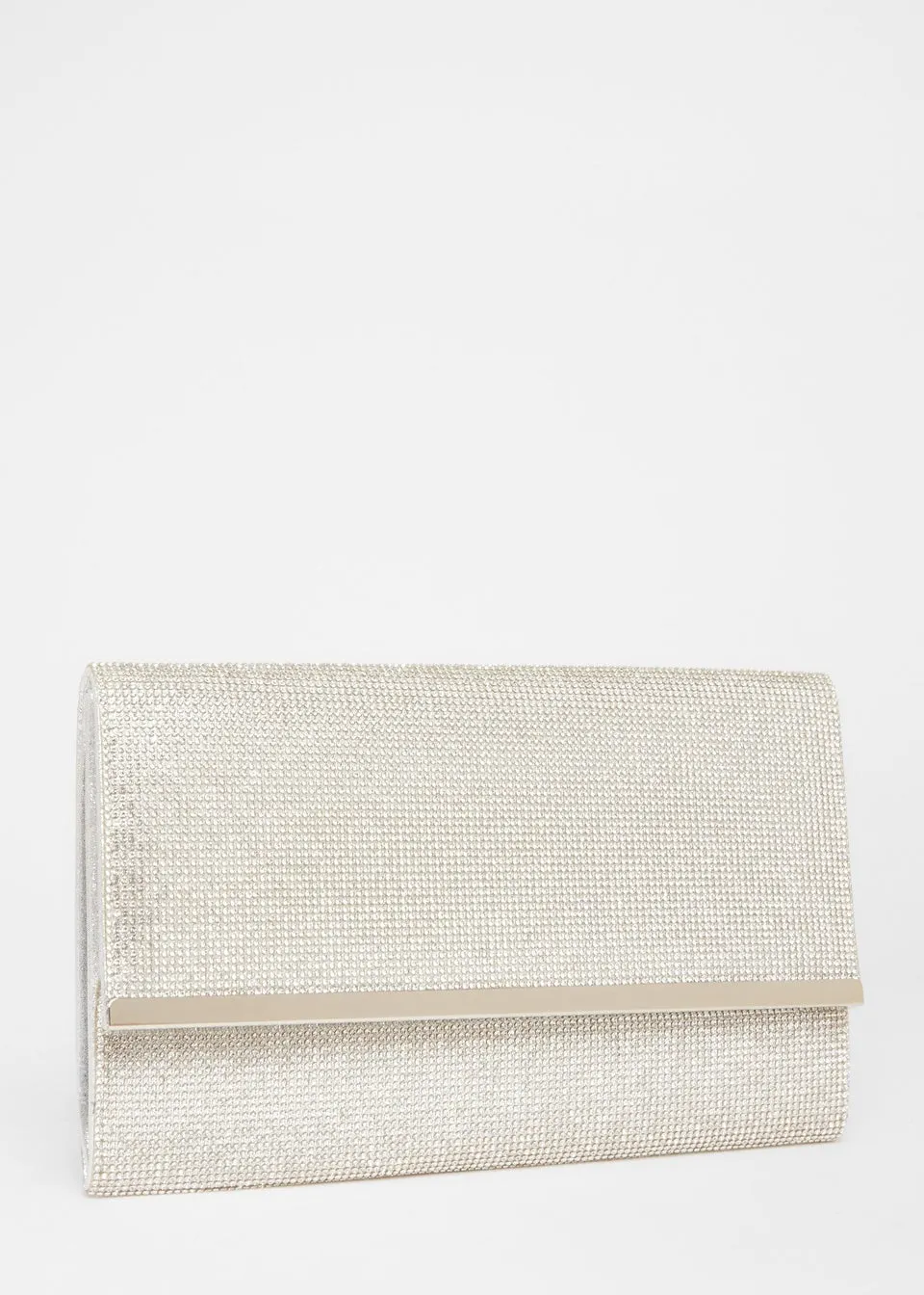 Sale!Quiz Silver Diamante Envelope Clutch Bag