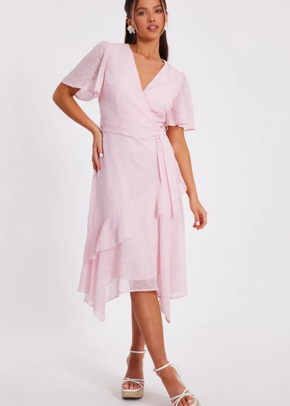 Sale!Quiz Pink Petite Textured Chiffon Midi Dress
