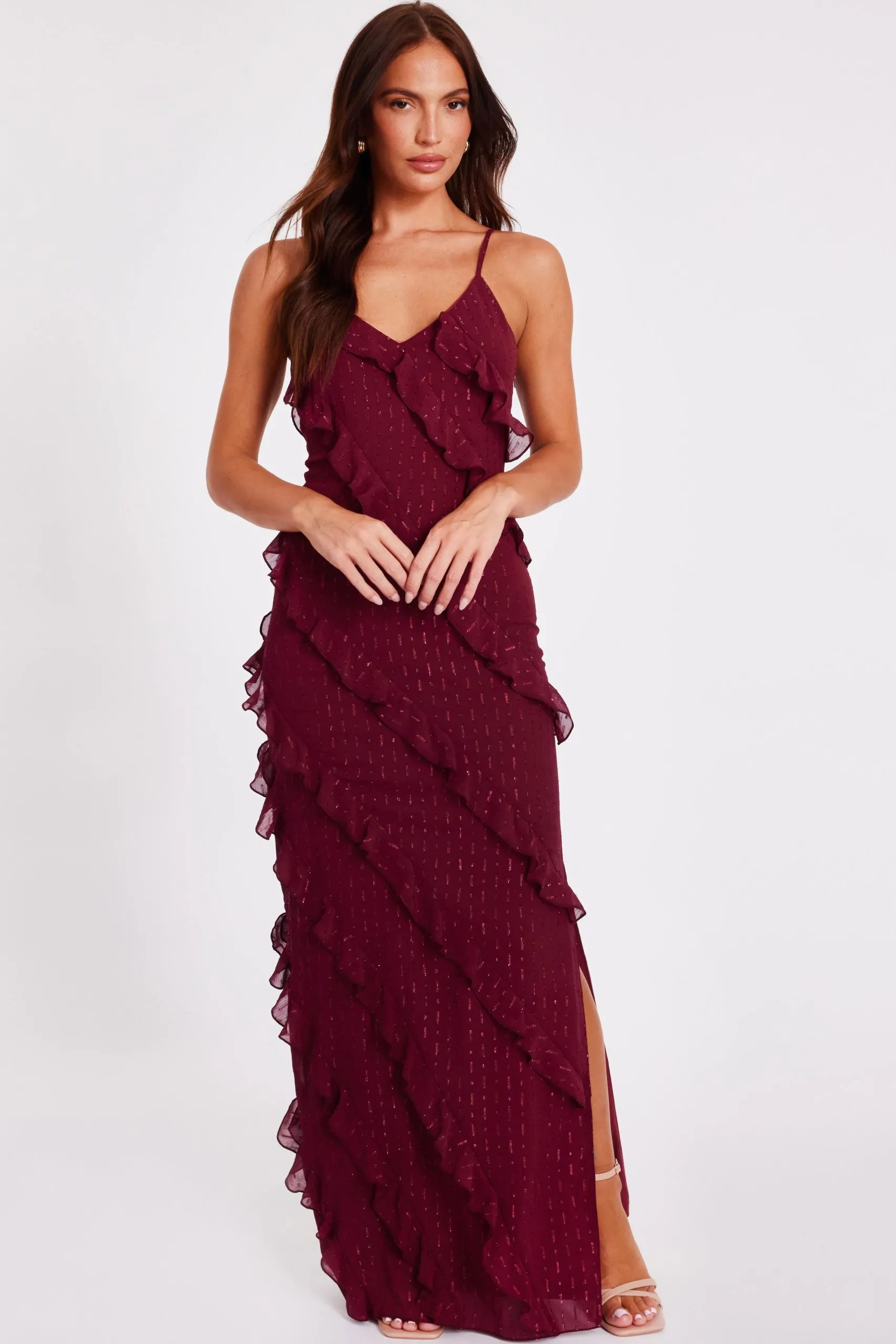 Sale!Red Chiffon Ruffle Midaxi Dress