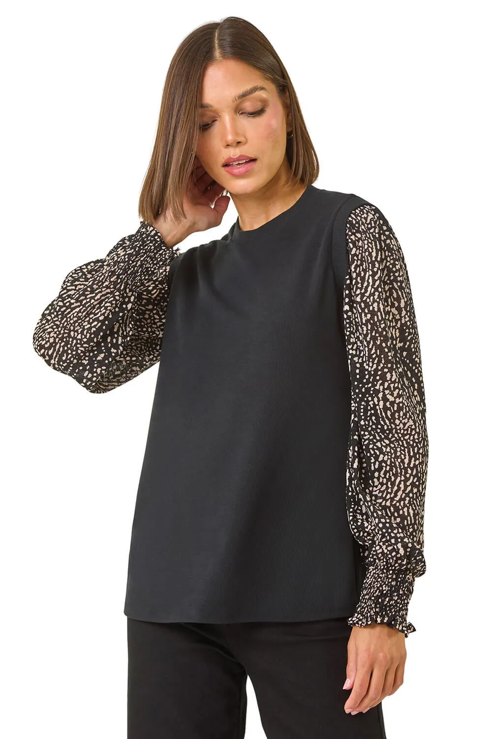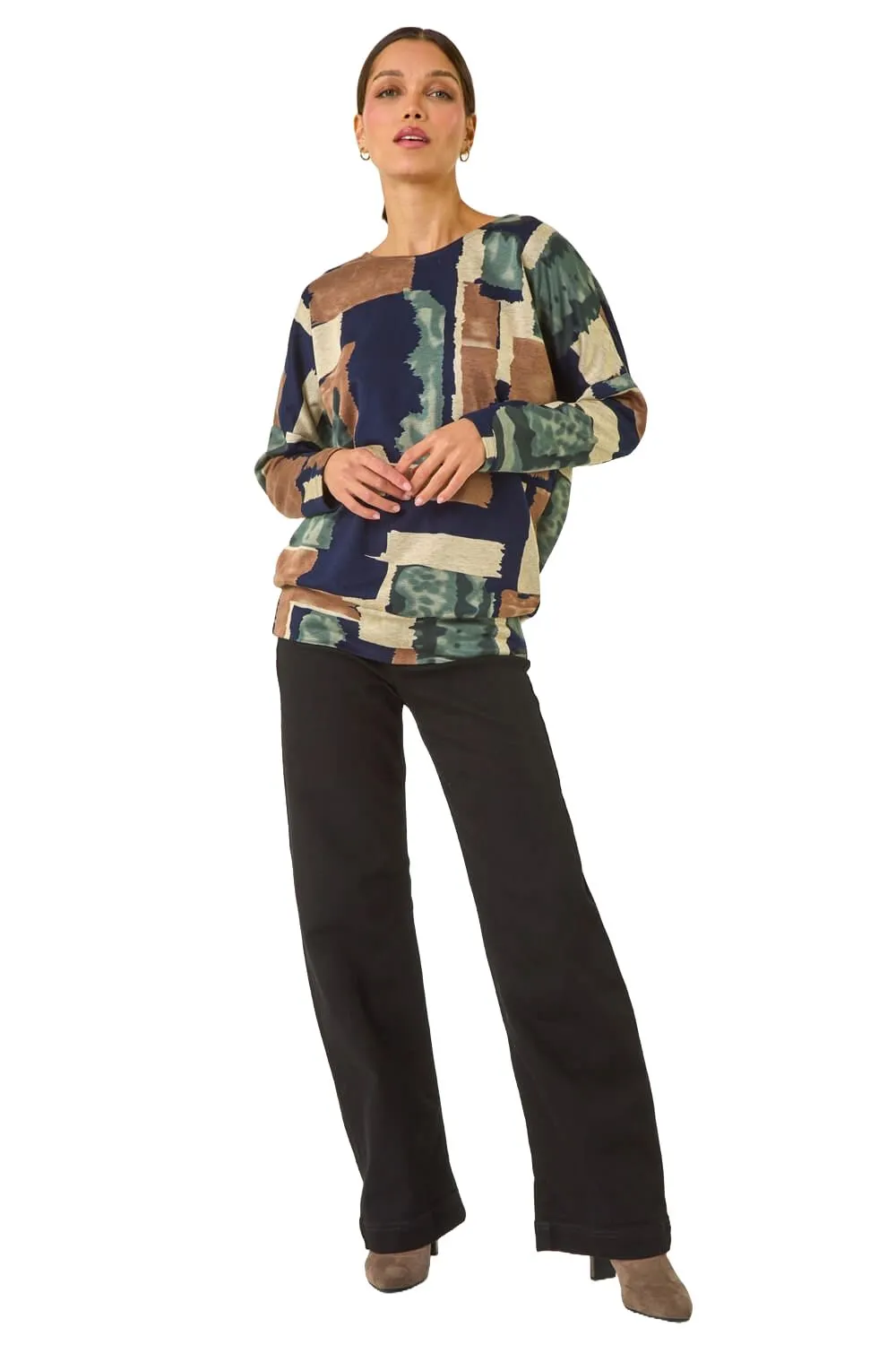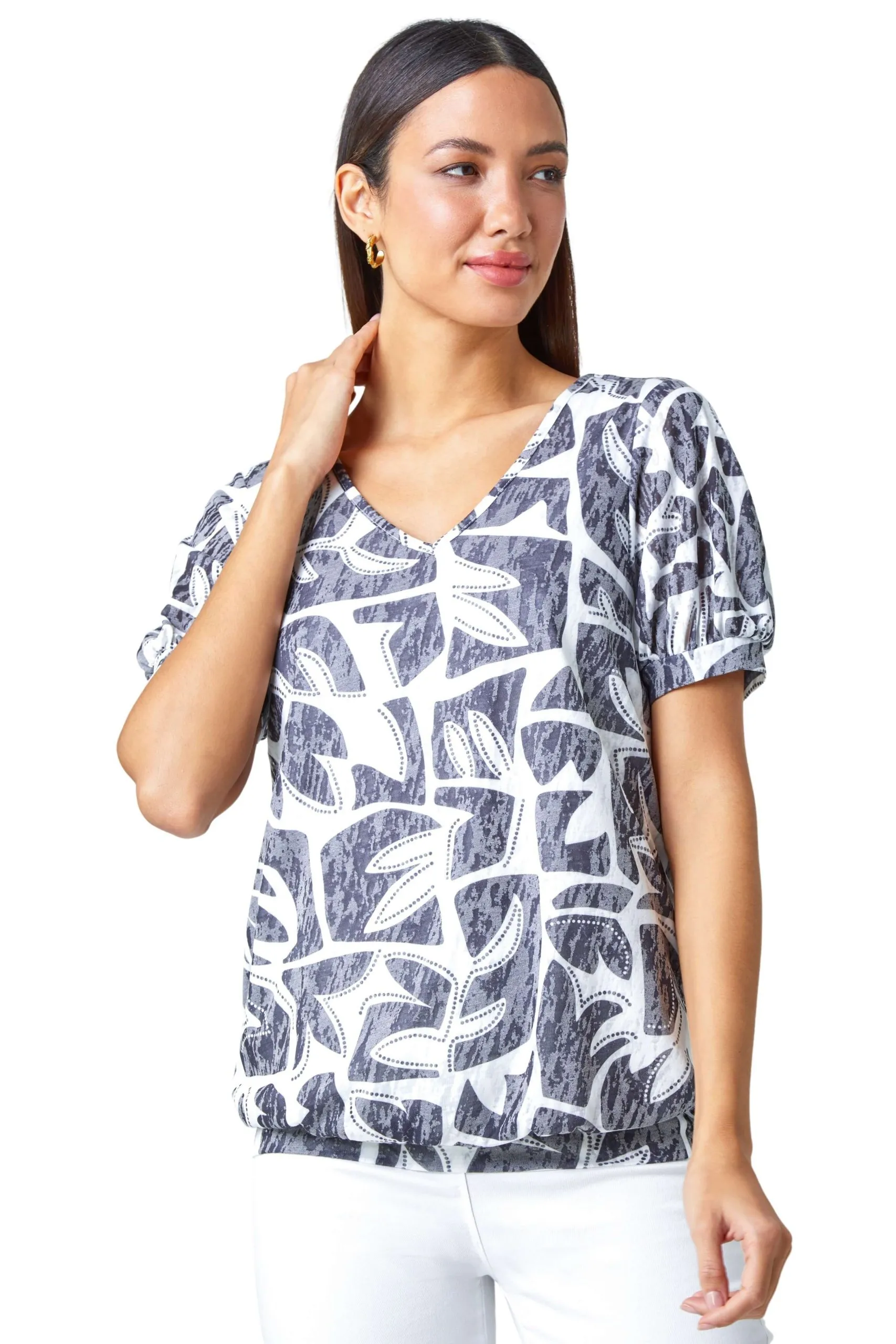 • Abstract Burnout  V-Neck  Blouson Stretch Top