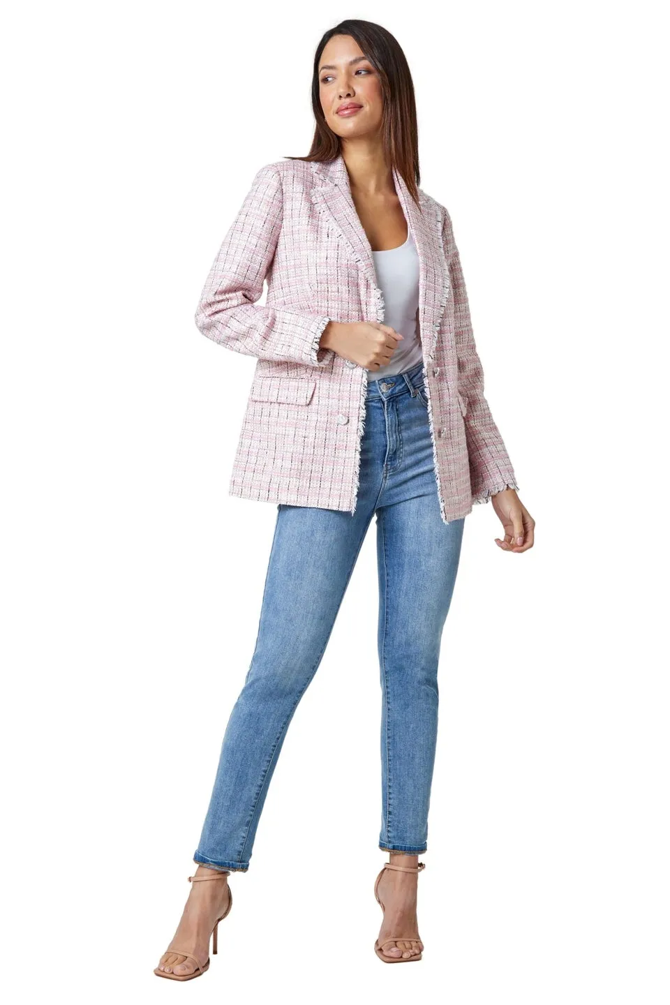 Sale!Roman Pink Frayed Edge Boucle Check Jacket