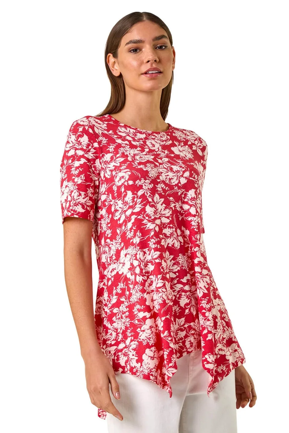 Sale!Roman Pink Floral Print Hanky Hem Tunic Top