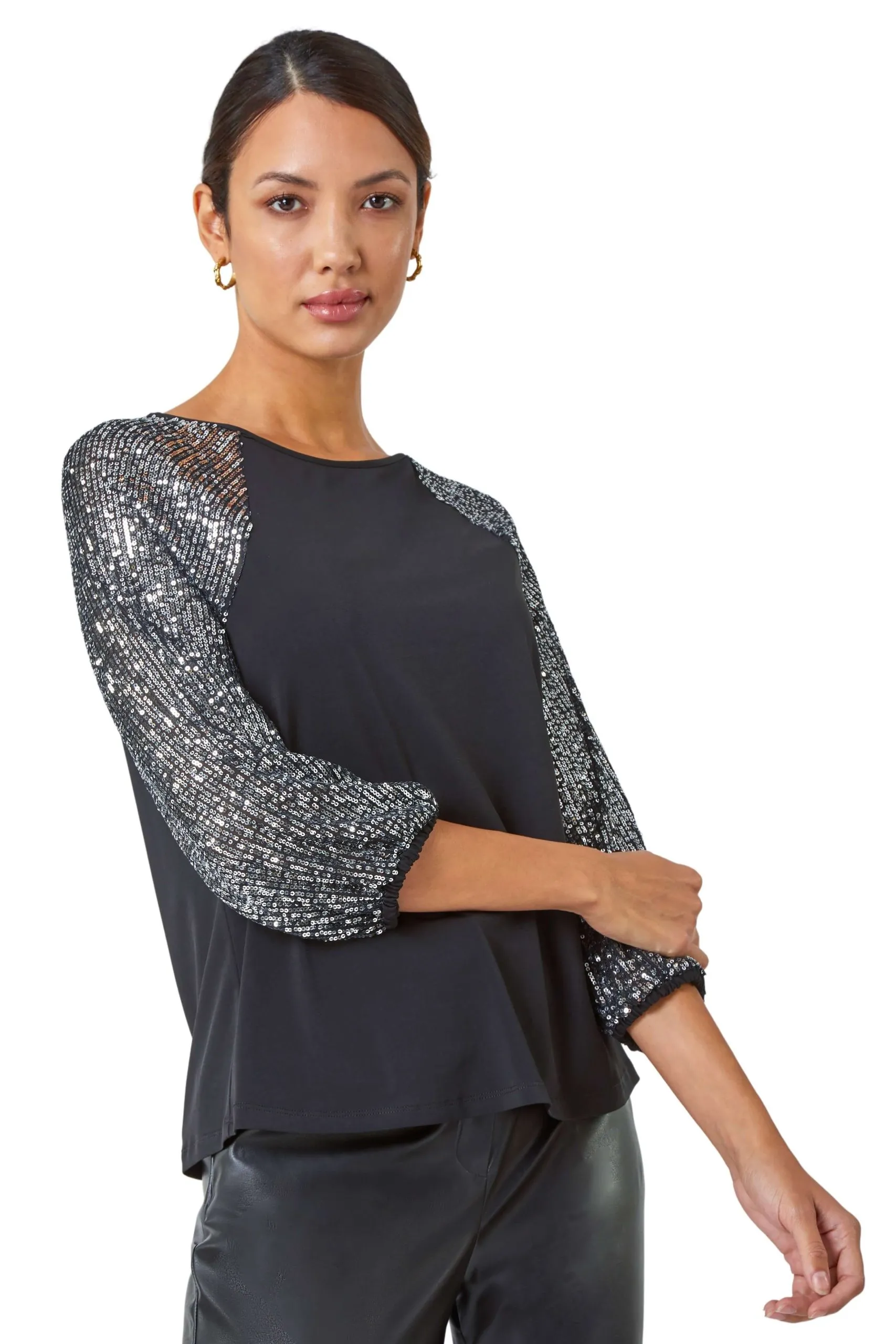 Sale!Sequin Sleeve Stretch Jersey Top