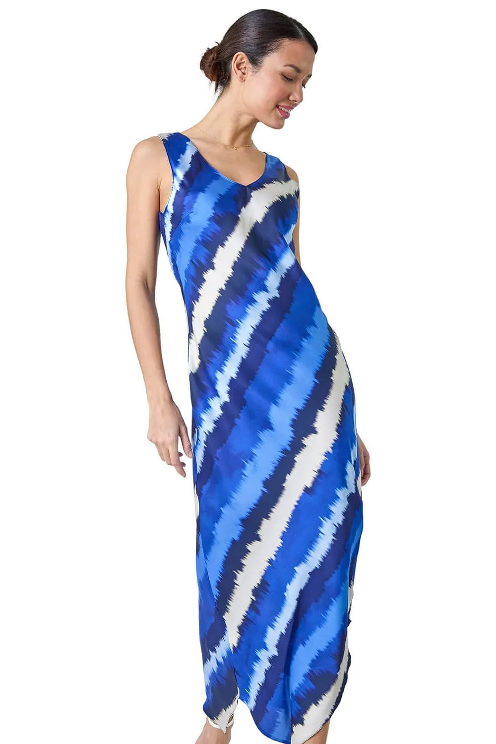 Sale!Stripe Print Satin Bodycon Midi Slip Dress