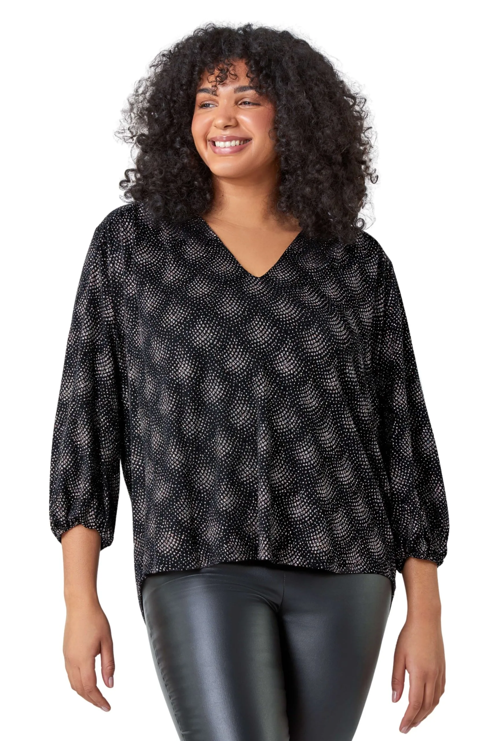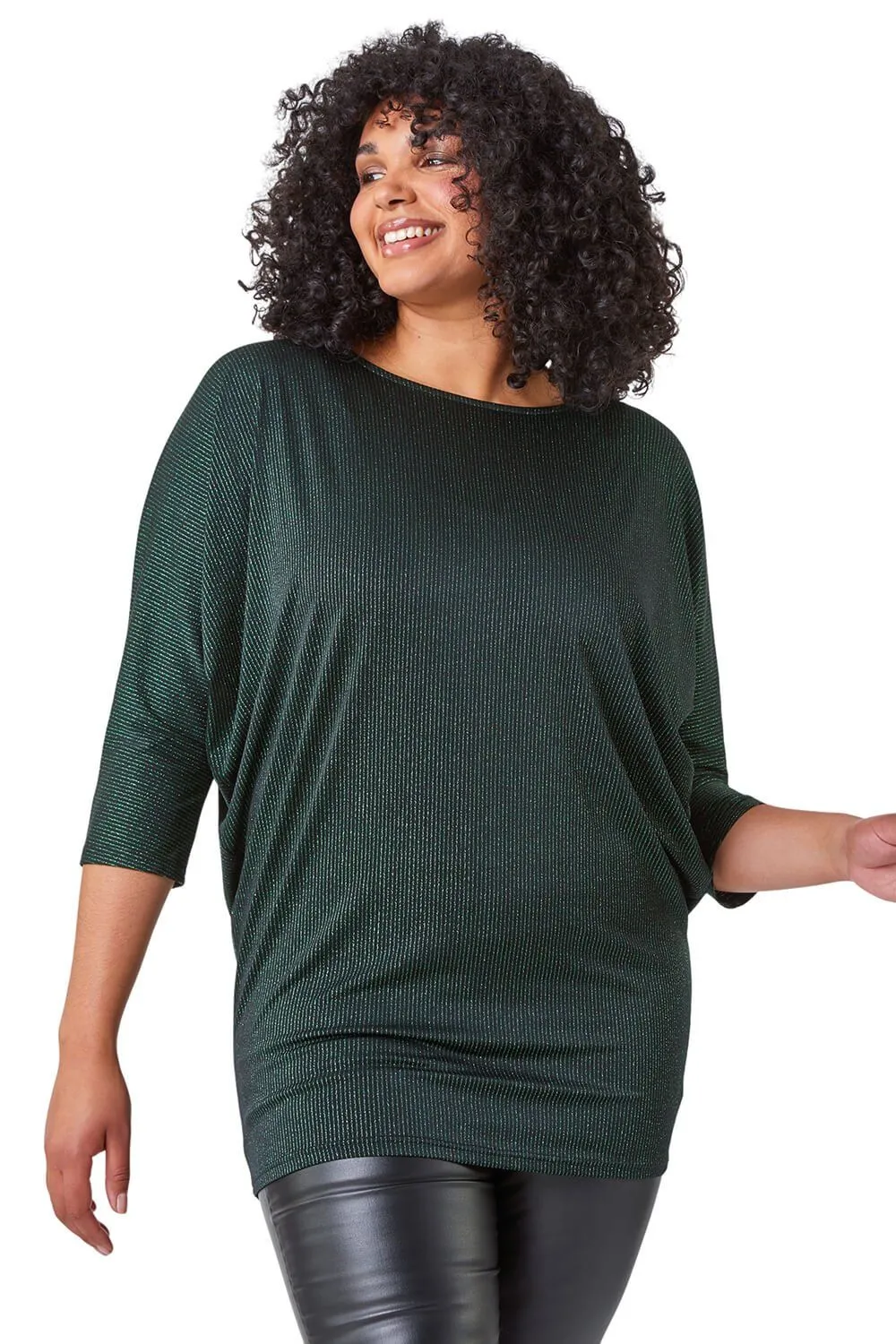 Sale!Curve Glitter Stripe Blouson Stretch Top