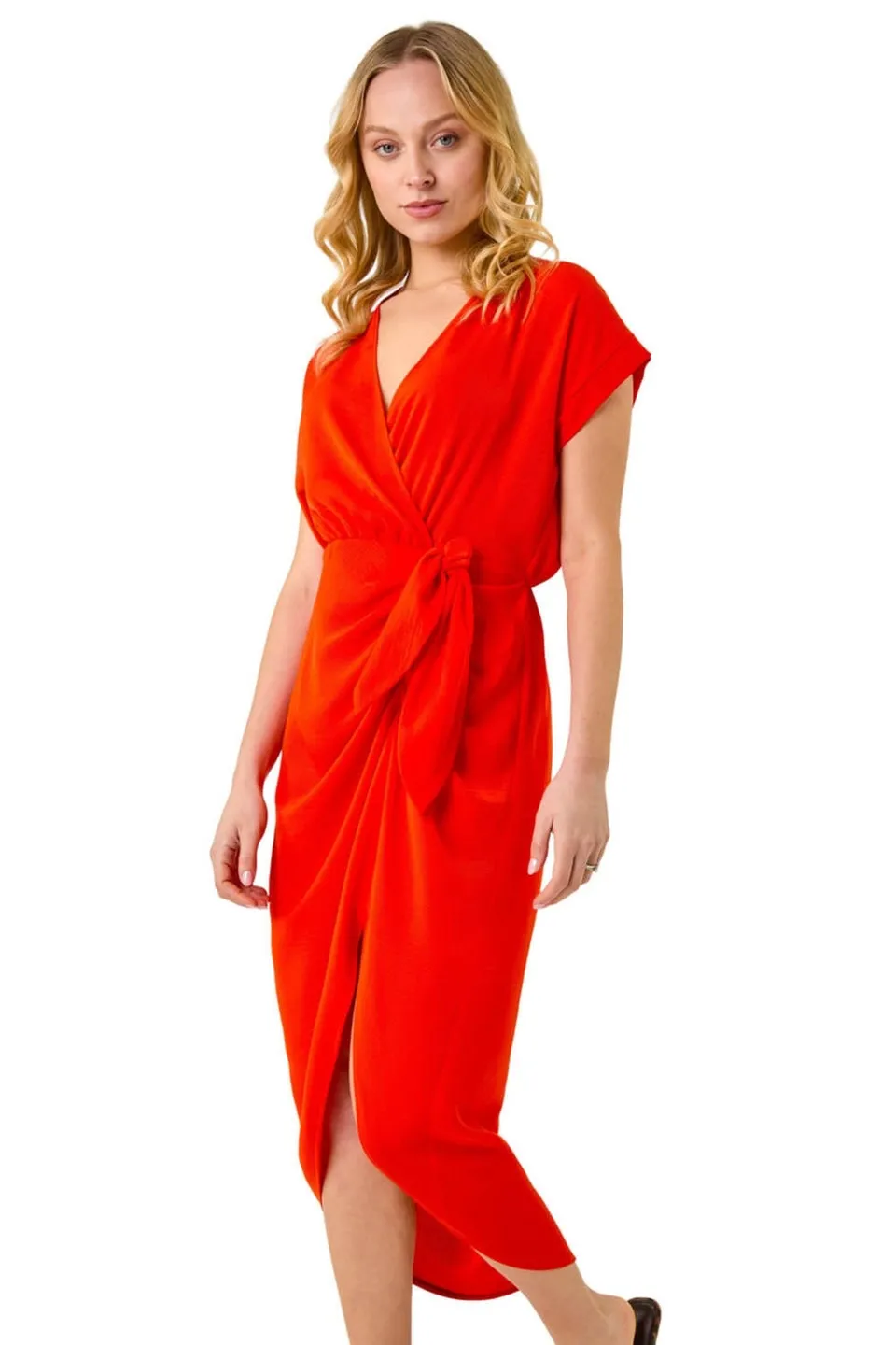 Dusk Orange Dusk Tie Detail Wrap Dress