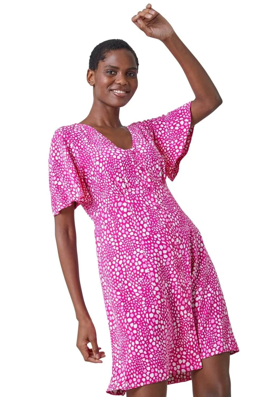 Double Fluted 3/4 Length Sleeve Shift Dress