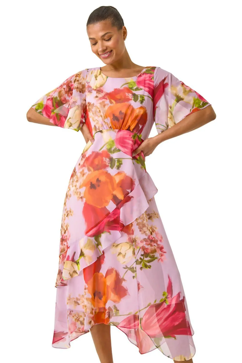 • Floral Painted Frill Midi Dress