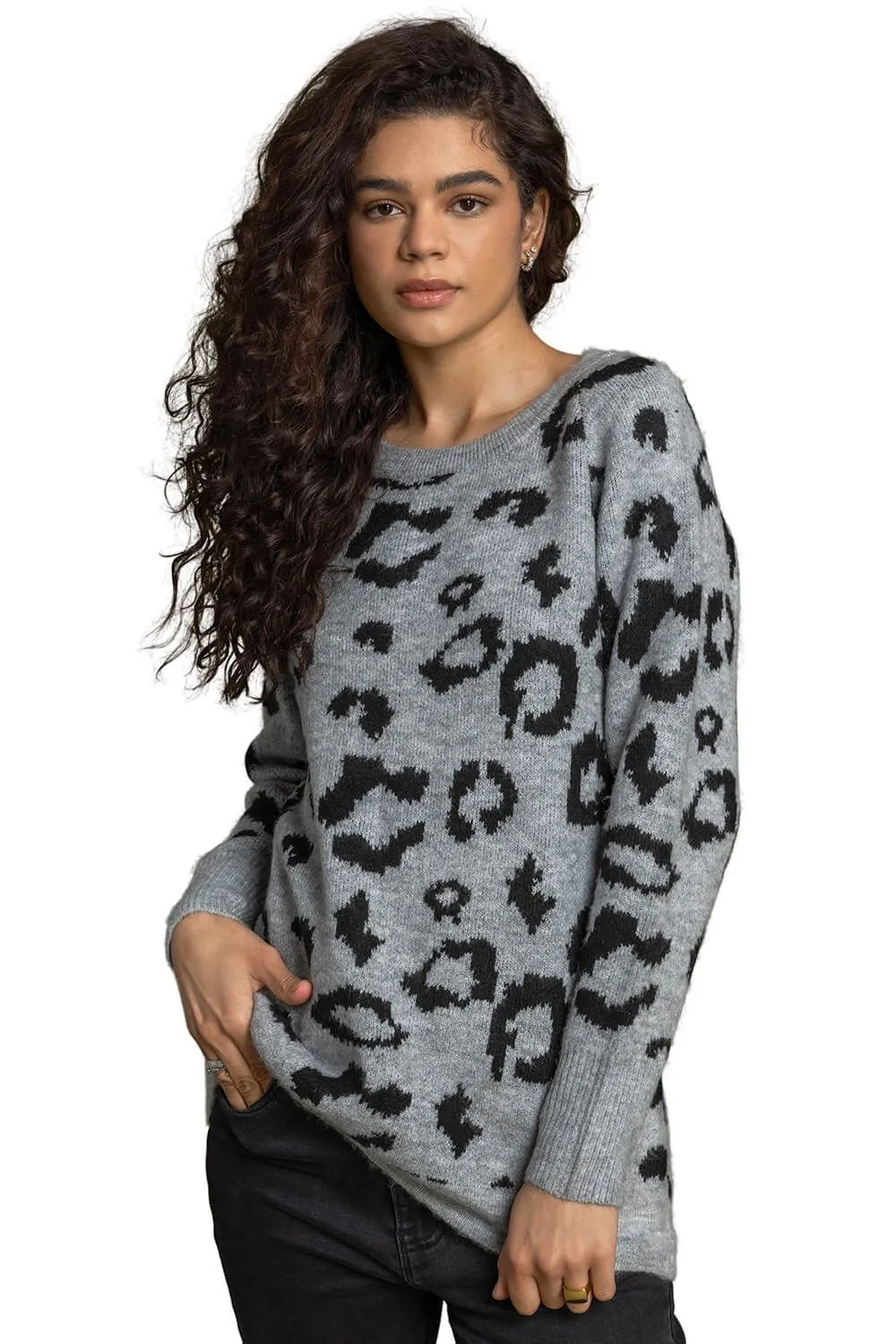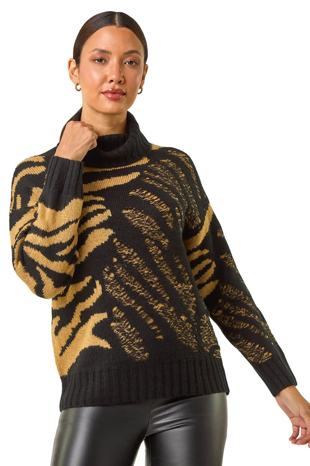 • Jacquard Animal Print Roll Neck Knit Jumper