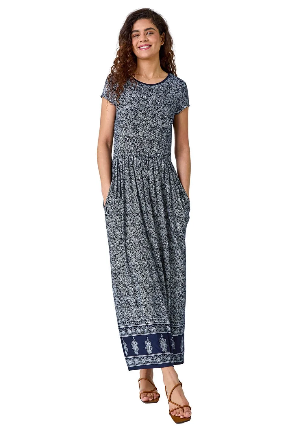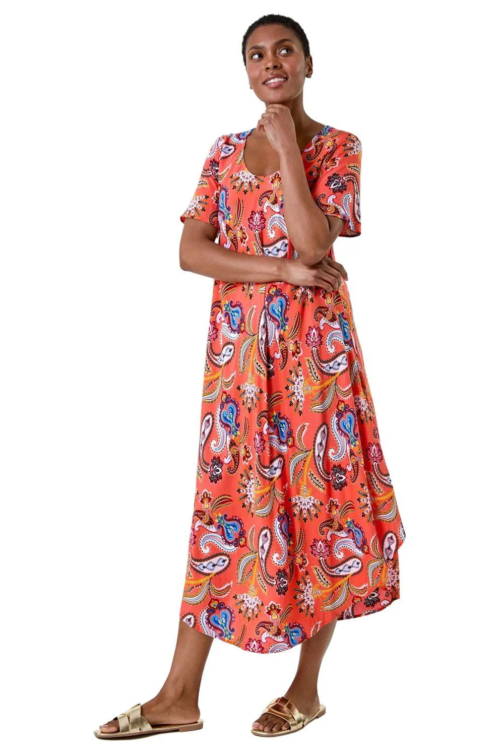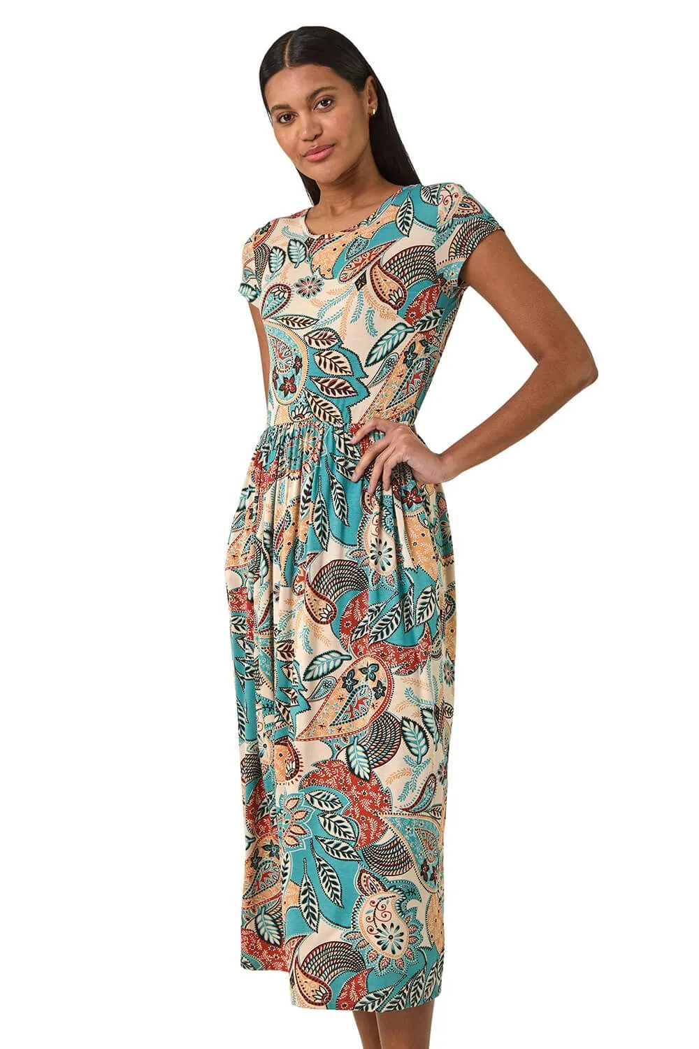 Paisley Pom Pom Trim V-Neck Crinkle Vest Top