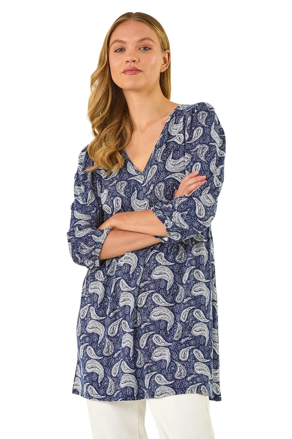 • Paisley Pom Pom Trim V-Neck Crinkle Vest Top