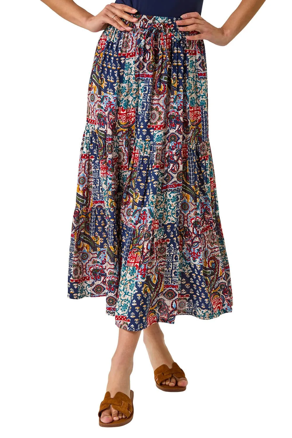 Sale!Palm Tile Print Tiered Palazzo Trouser