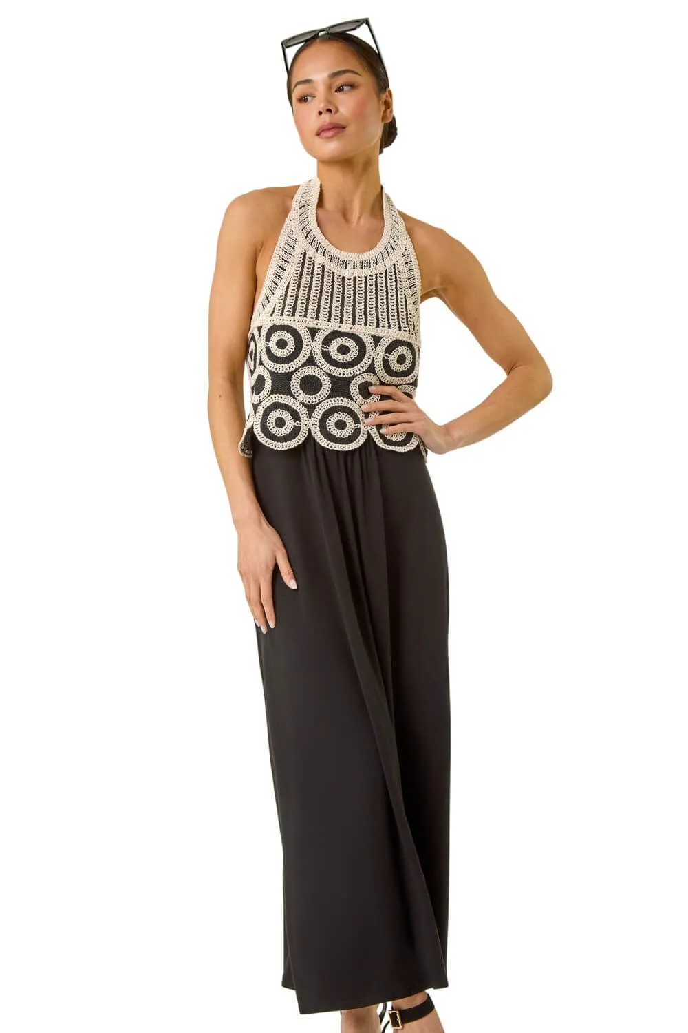 • Petite Crochet Contrast Maxi Dress