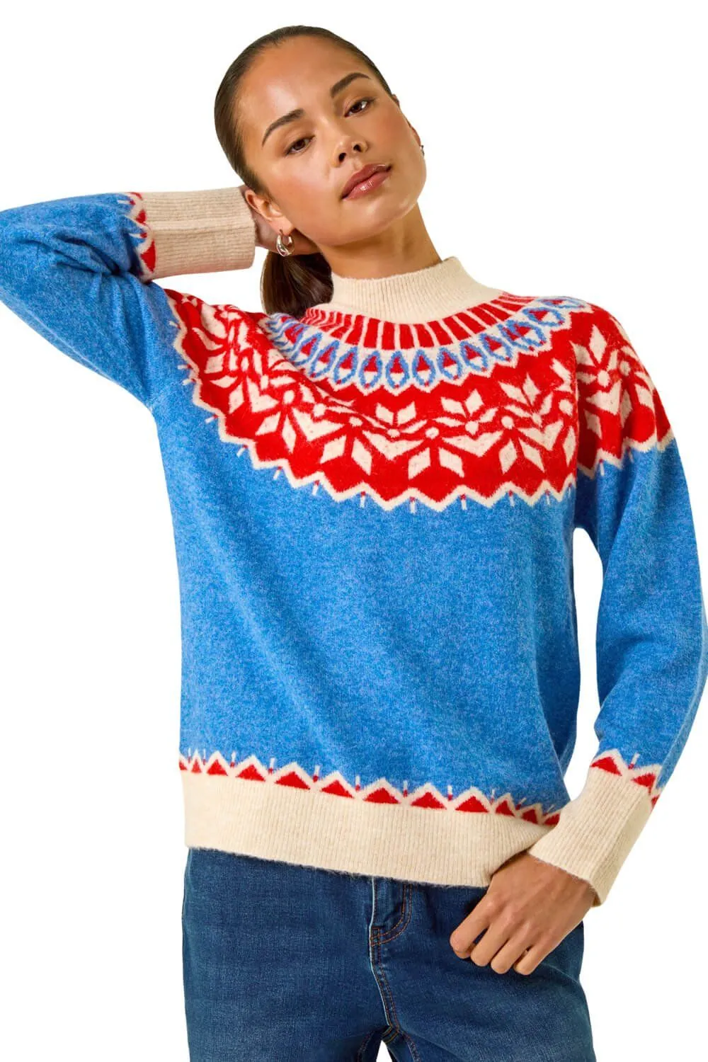 Petite Fairisle High Neck Knit Jumper