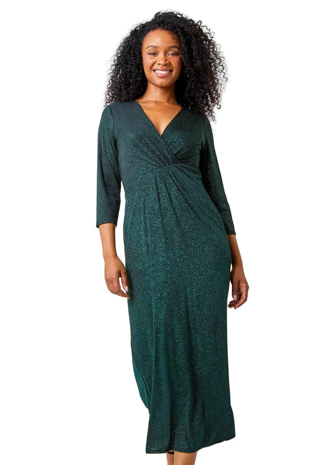 • Petite Gathered Glitter Bodycon Maxi Dress