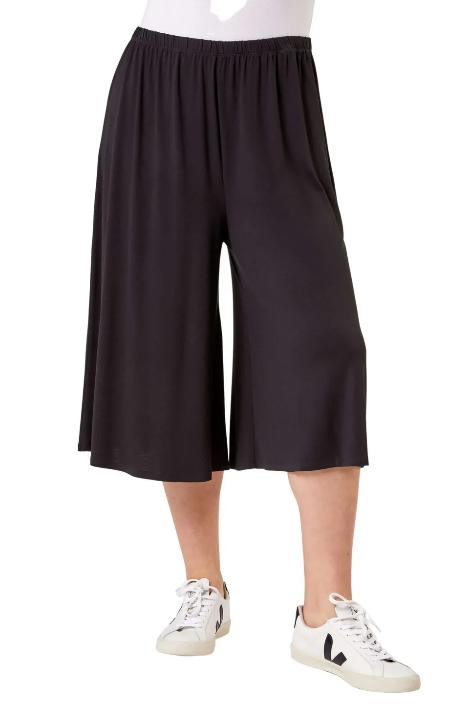 Sale!Roman Black Curve Plain Elastic Waist Culotte Trousers