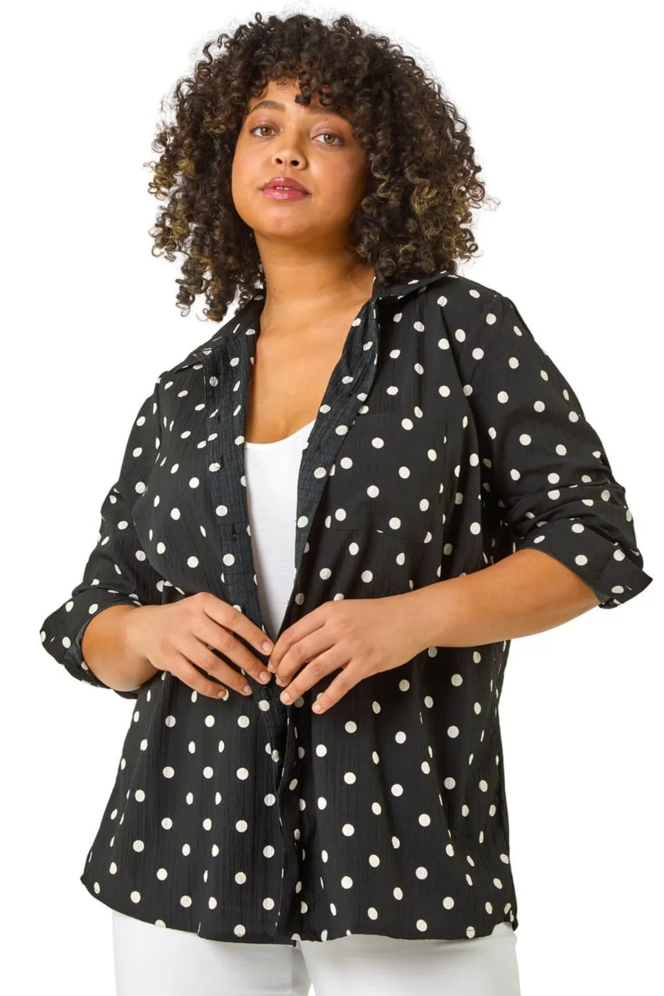 Sale!Roman Black Curve Spot Print Button Shirt