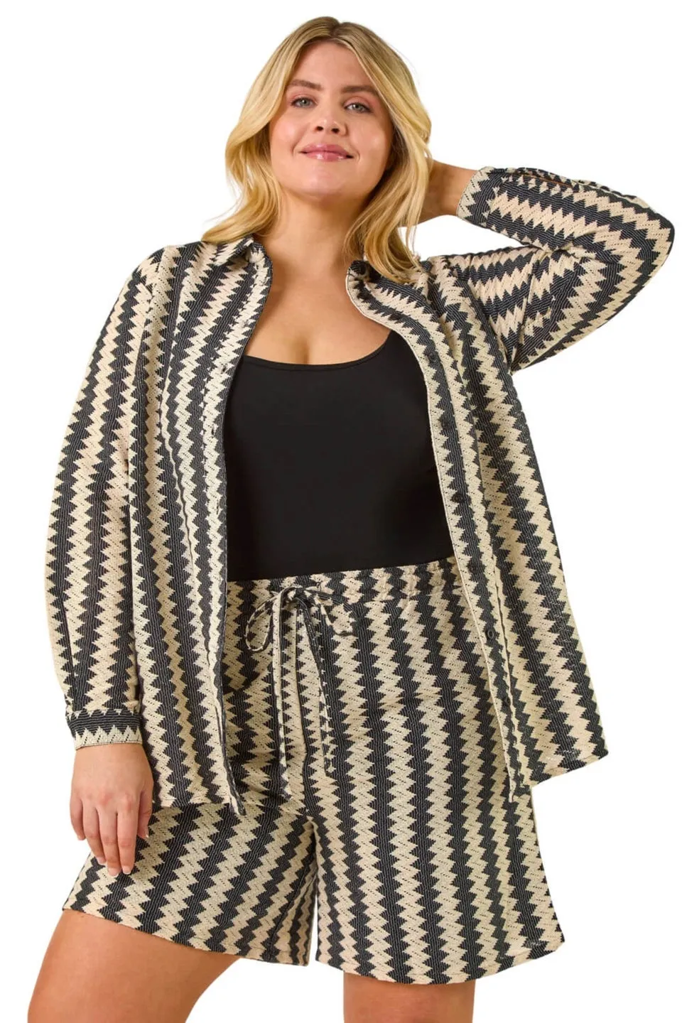 Sale!Roman Black Curve Zig Zag Tie Waist Shorts