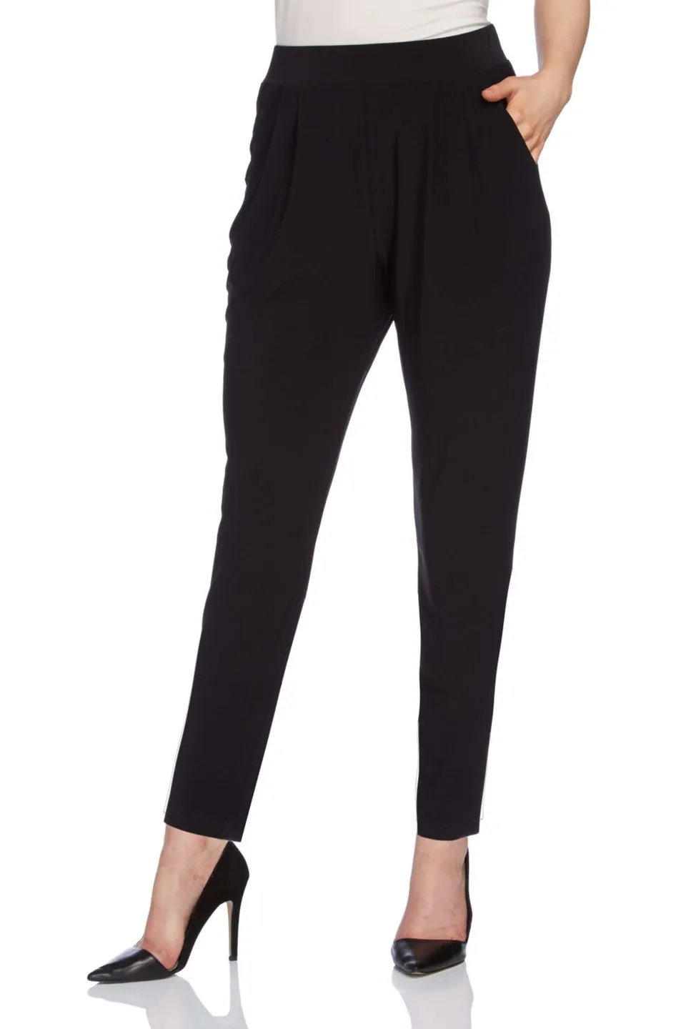 • Roman Black Jersey Stretch Elastic Waist Harem Trousers