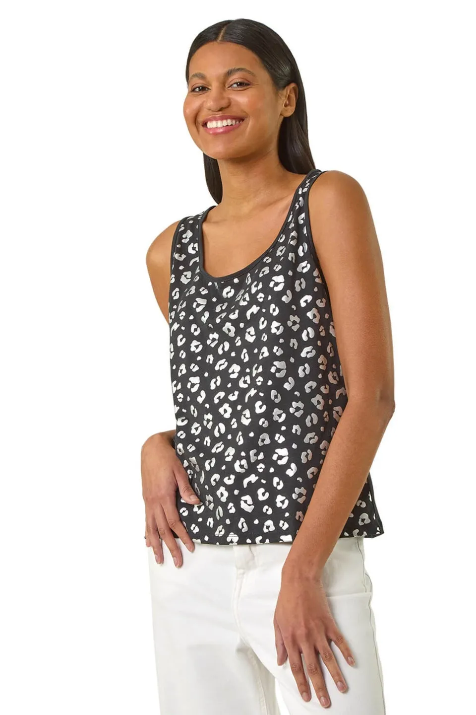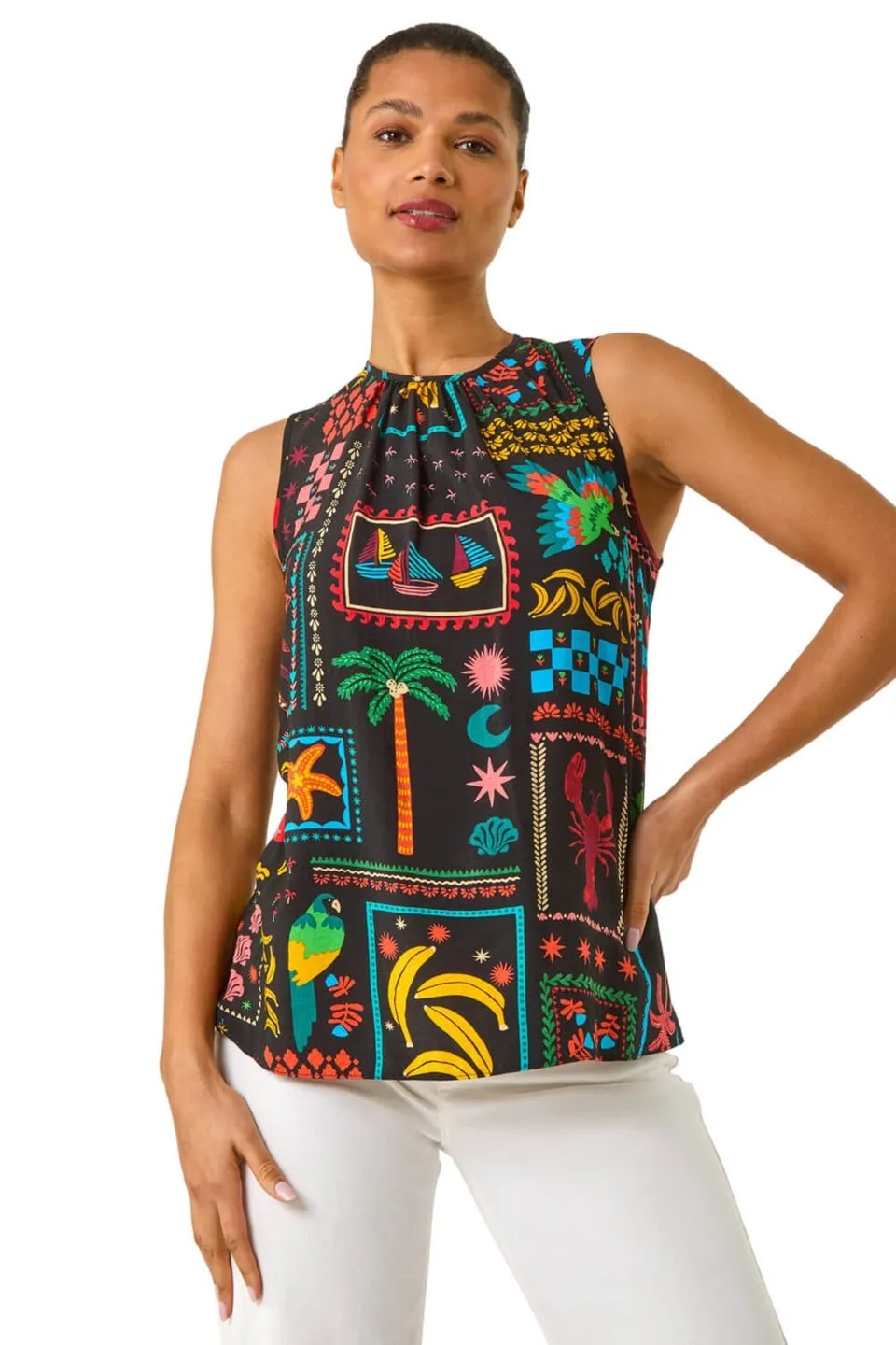 • Roman Black Floral Print Midi Elastic Waist Stretch Skirt