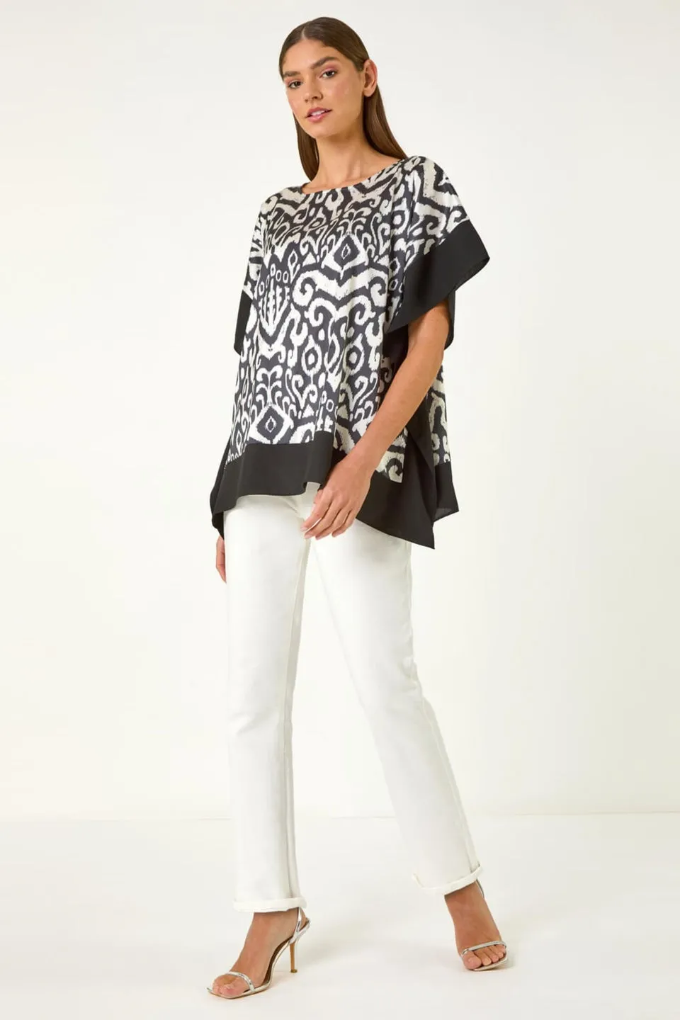 Roman Black Mono Floral Palm Print Wide Leg Trouser