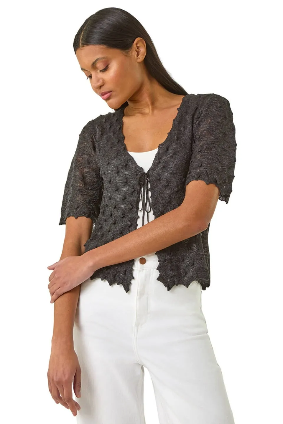 Roman Black Sparkle Embellished Cuff Chiffon Top